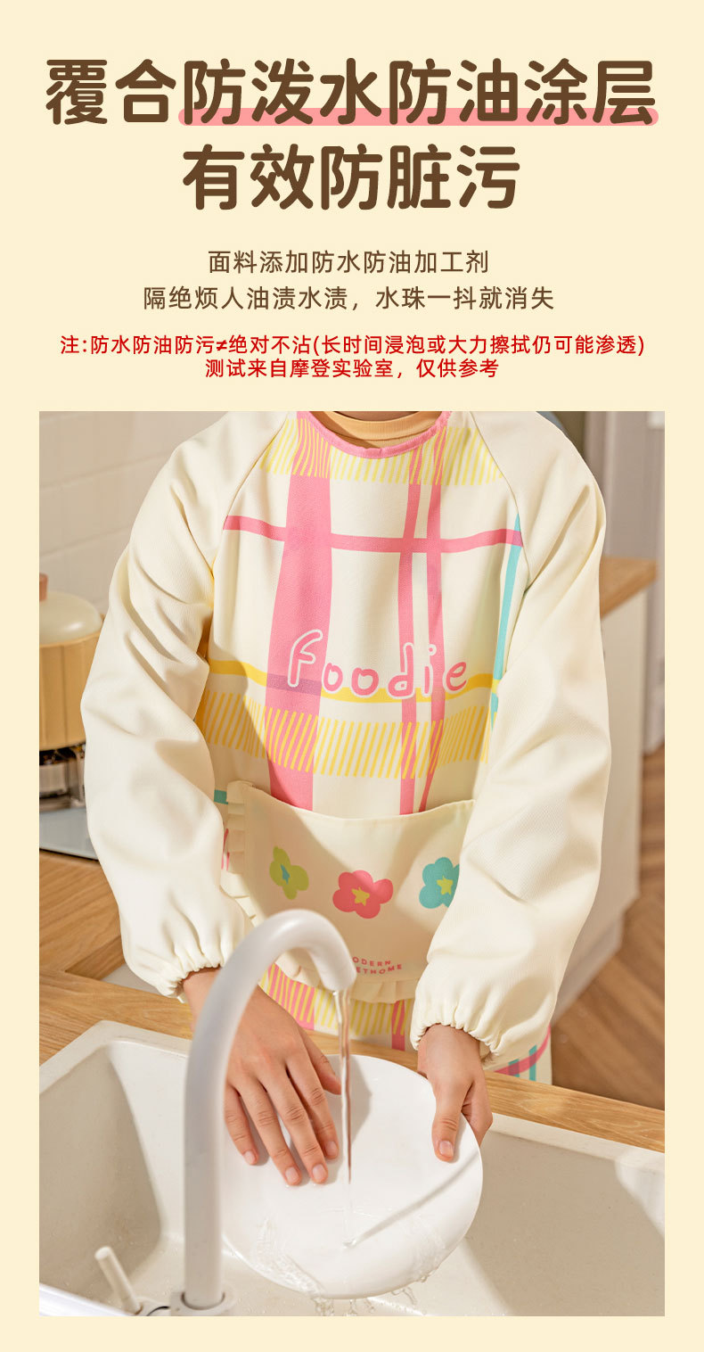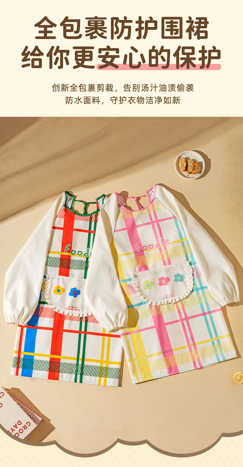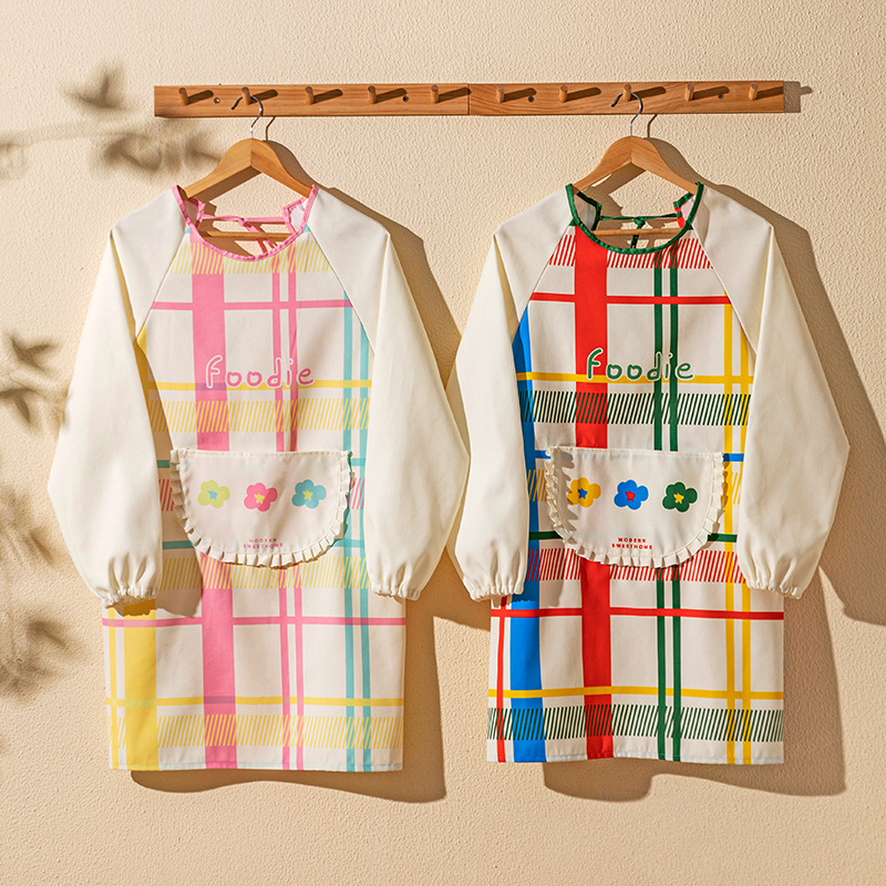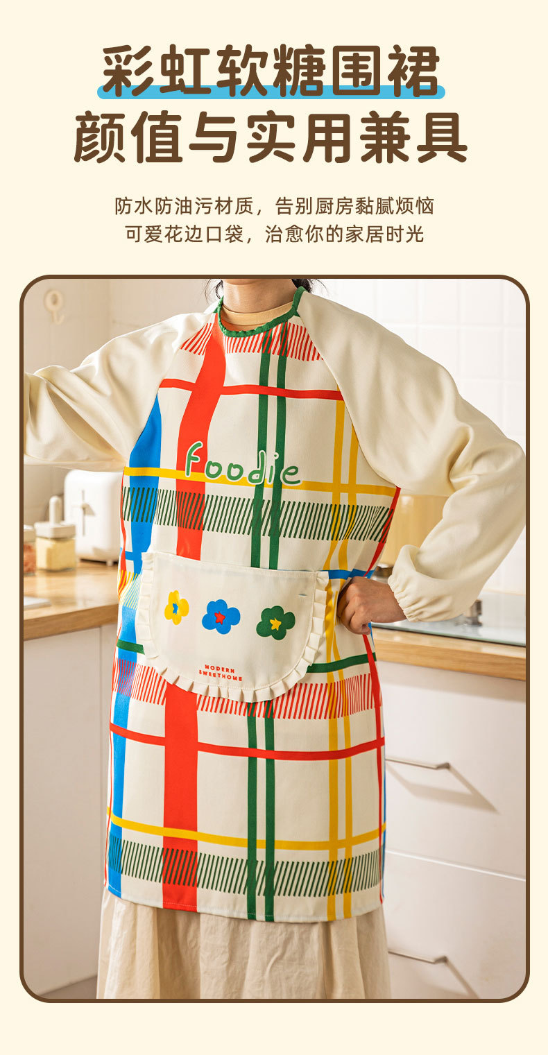 [rainbow soft candy] apron [waterproof and oil-proof/long sleeve with pocket]]