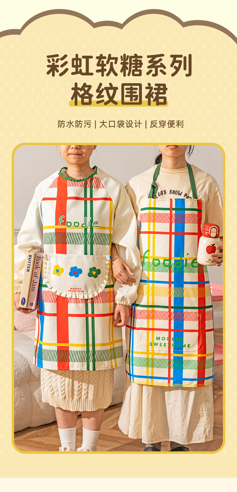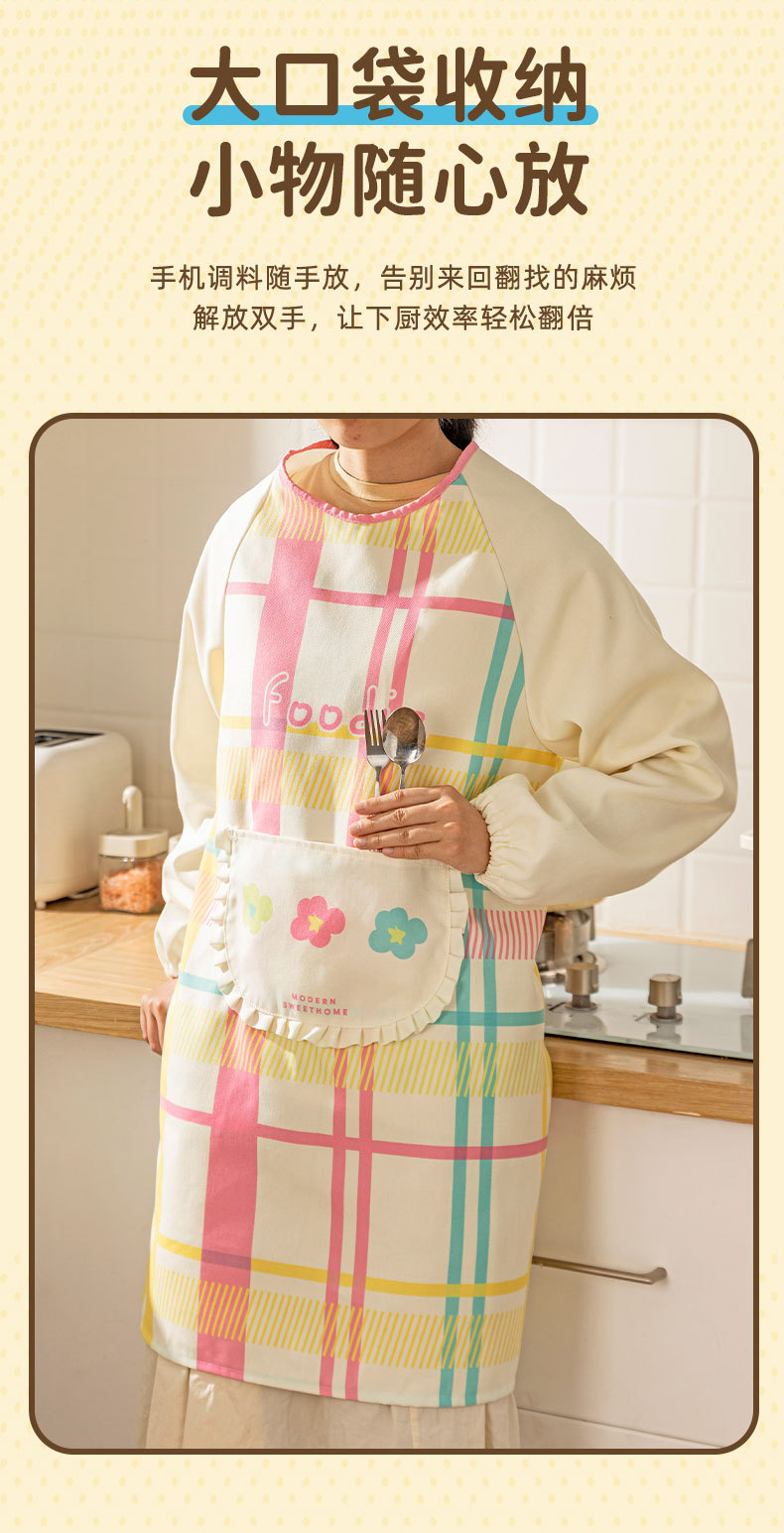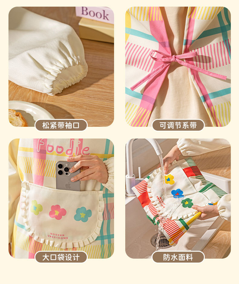 [rainbow soft candy] apron [waterproof and oil-proof/long sleeve with pocket]]