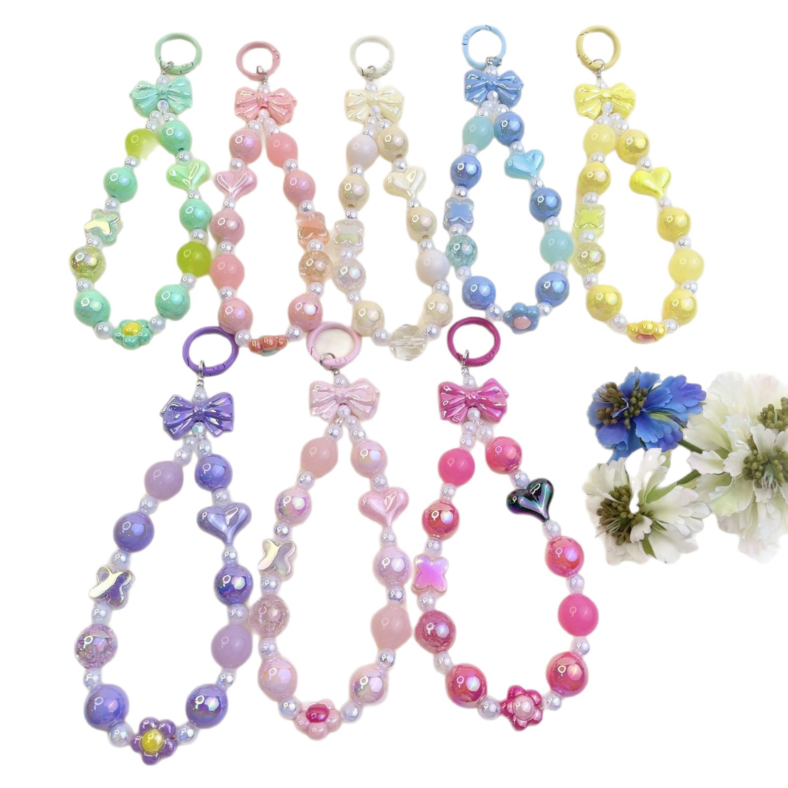 color bow love hand-painted beads pendant milky white (free gasket)