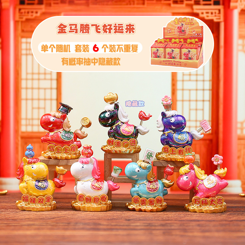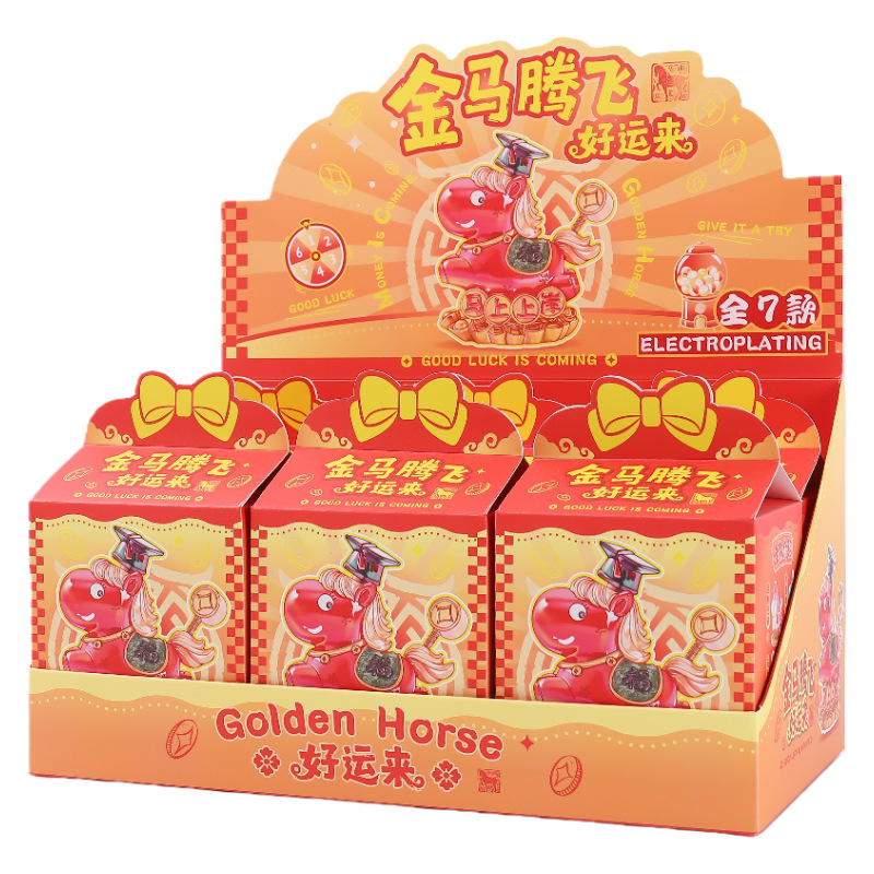 1040-439 Golden Horse Soars Good Luck Comes with Spinning Mystery BoxAll electroplating bounce bounce turn |
