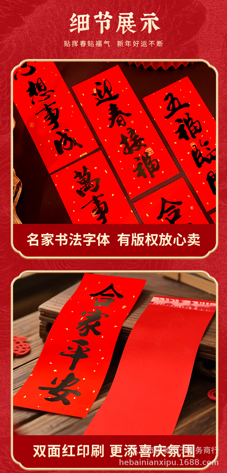 | 18 open double-sided red spring festival couplets | CN¥ 2.56 | 666 pack available |