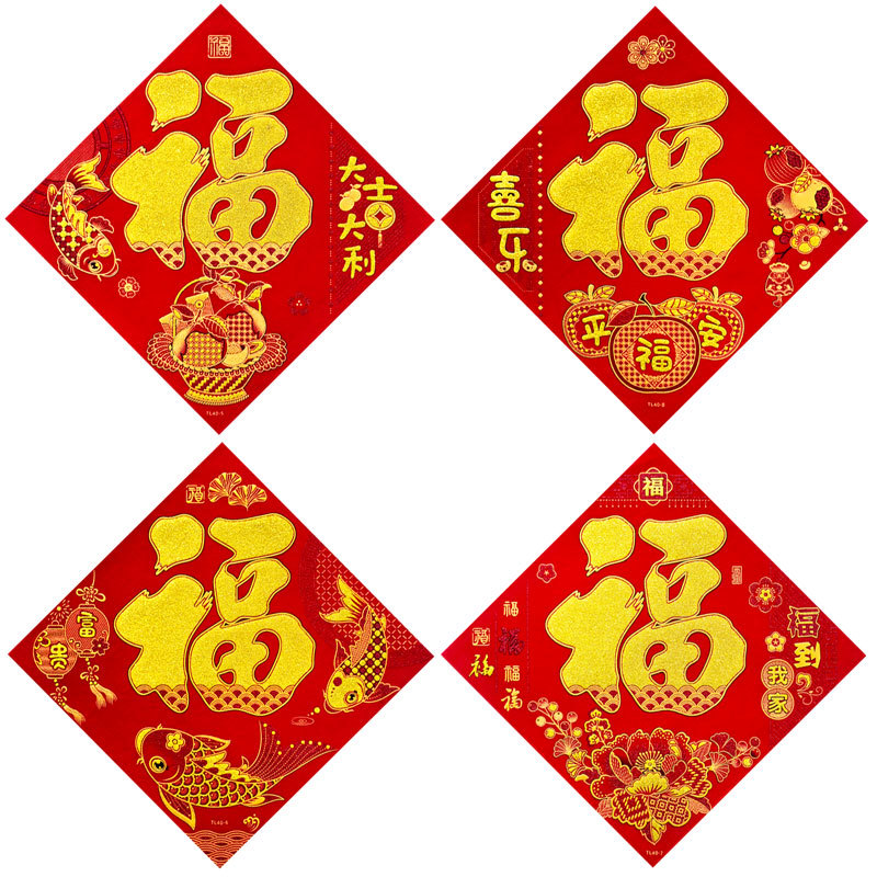 50# full adhesive three-dimensional flocking golden blessing [random]]