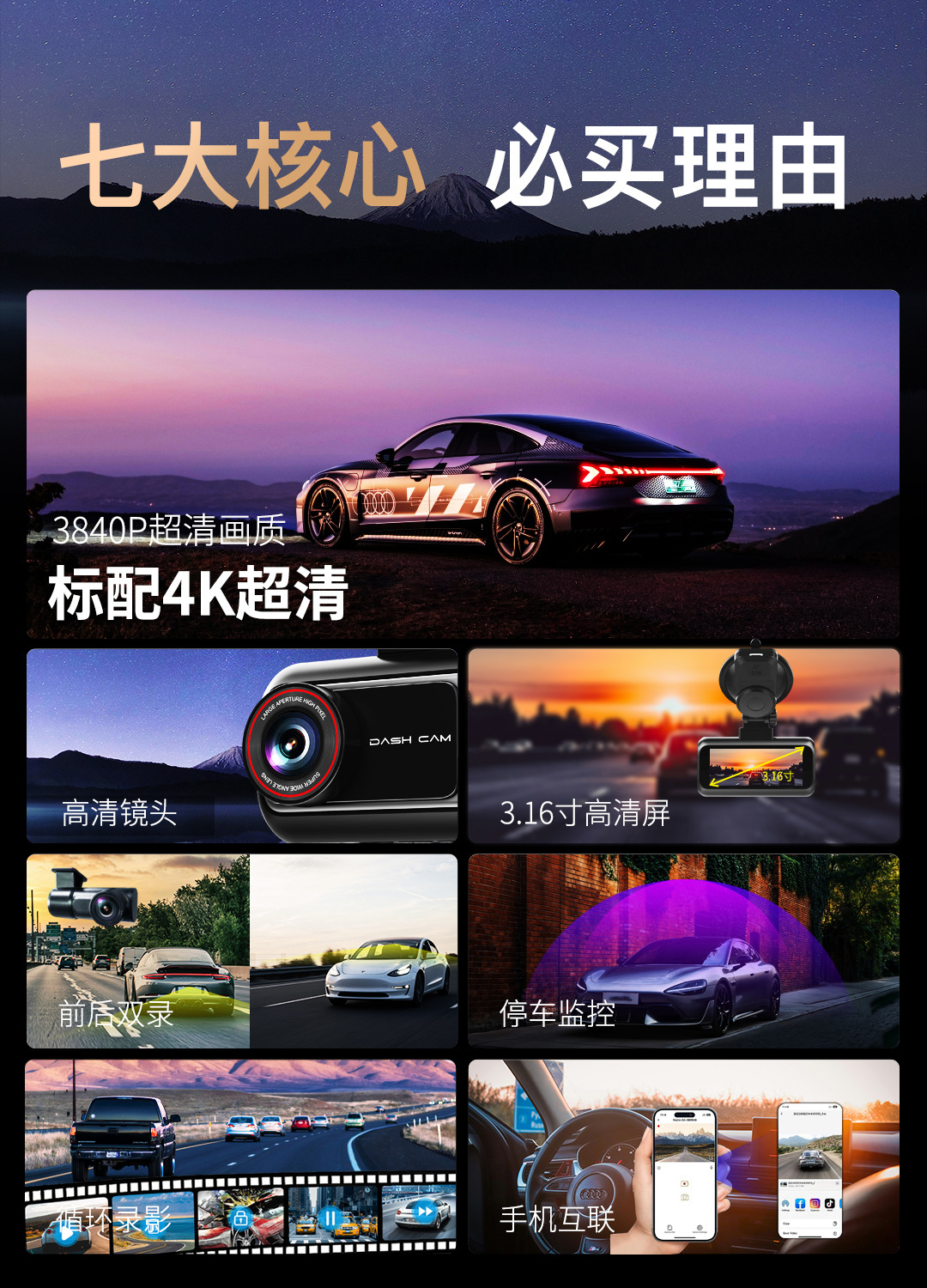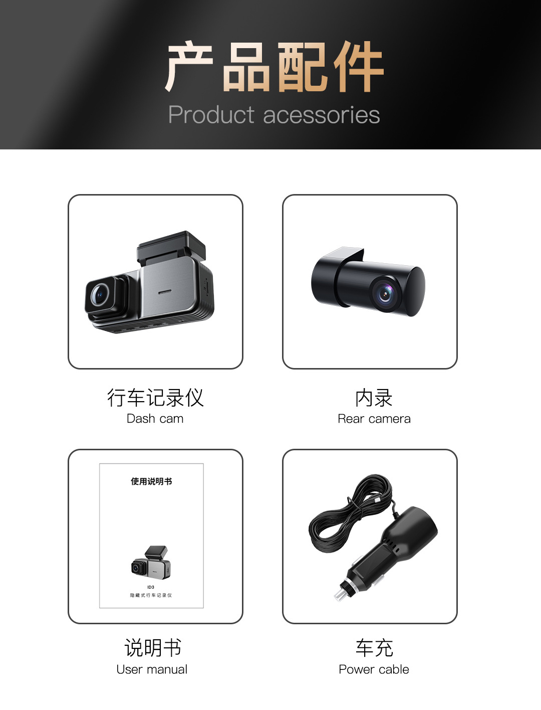 id3 double recording + car charging cable + rear car external photography