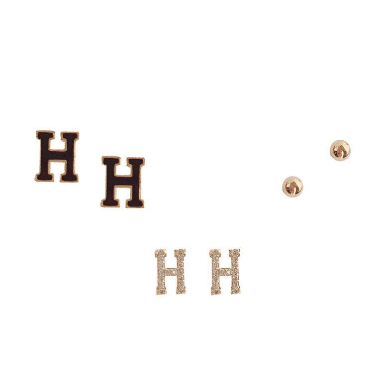 20# silver-zircon ball set earrings (thick gold plating)