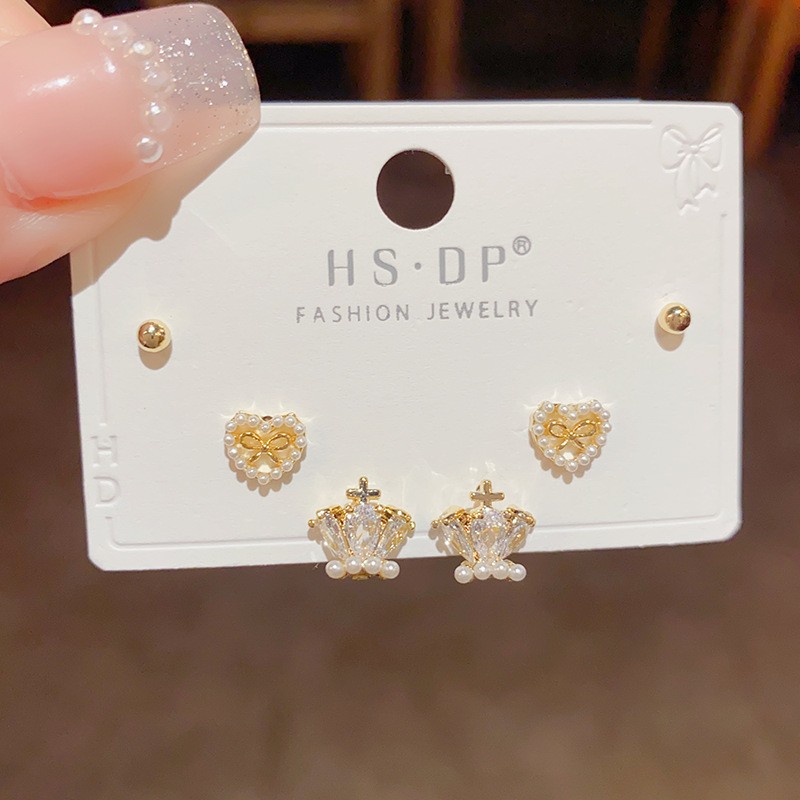 131# silver-opal bow pearl three-piece set (thick gold plating)