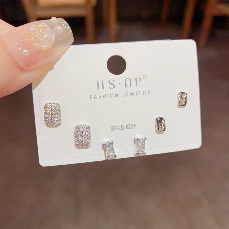 66# silver-square pearl three-piece set set earrings (thick gold plating)