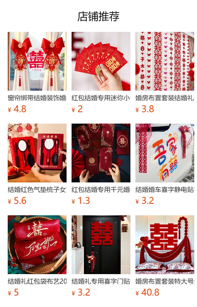 | thickened wedding stickers [applicable to door/bedroom door/background wall, etc.]] | CN¥ 3.3 | 2404 piece available |