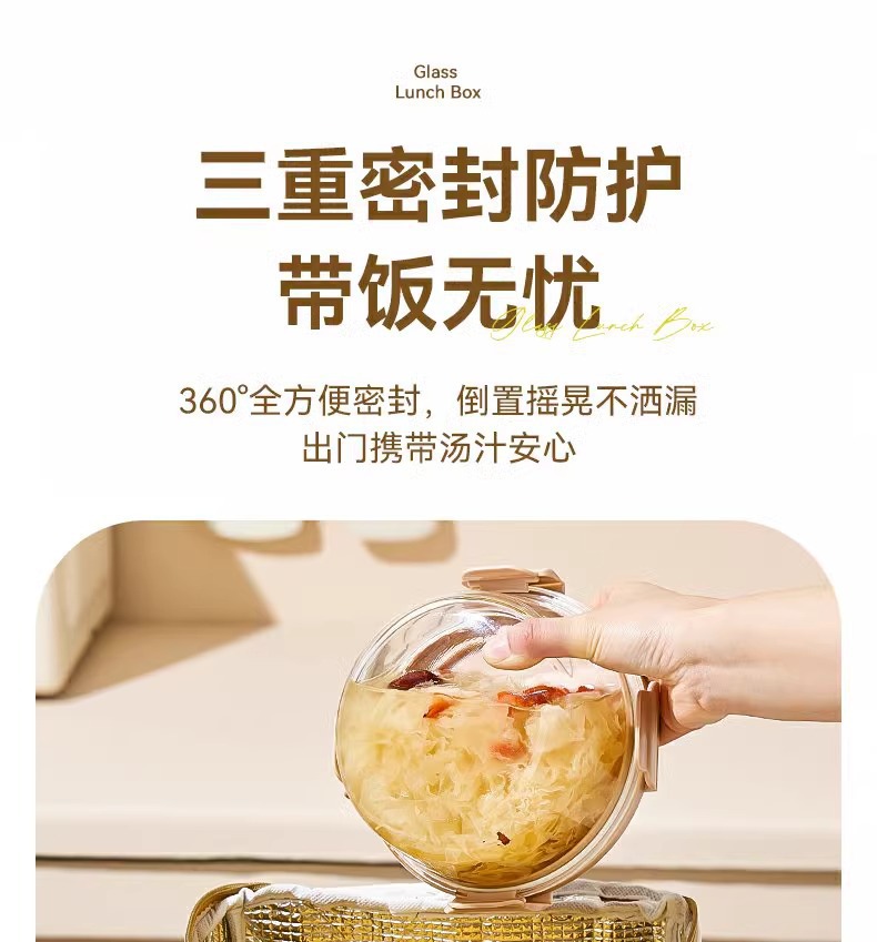 13_thick glass milk white long two grids 1000ml + round 660ml [lunch bag + tableware set]]