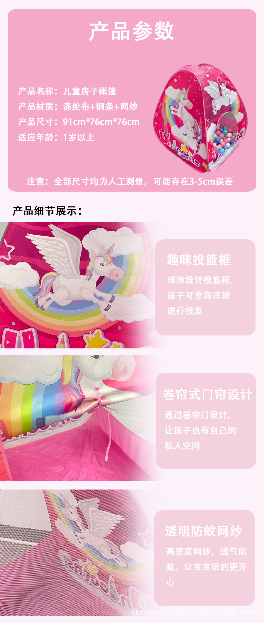 pink pony [tent + crawling mat +50 balls + star light]]