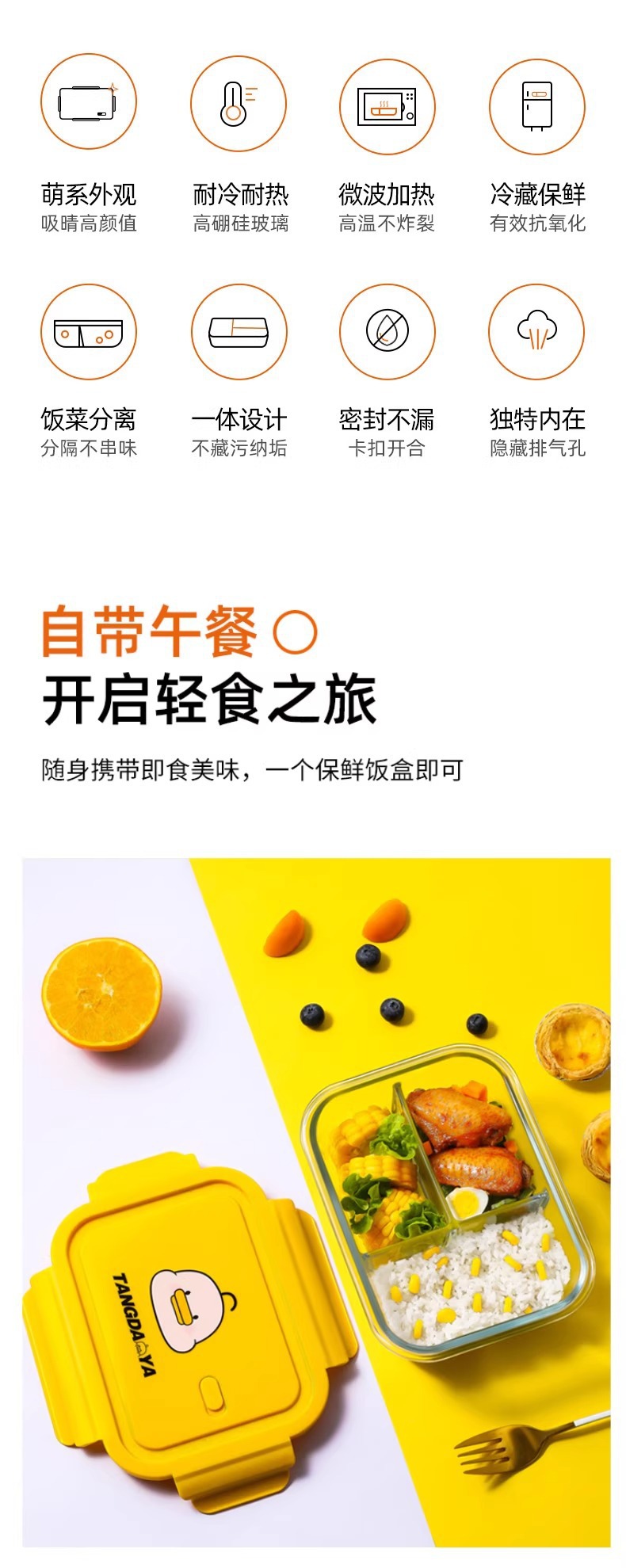 08_ [set upgrade antibacterial] lying duck round lunch box large 950ml + lunch bag tableware
