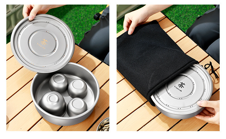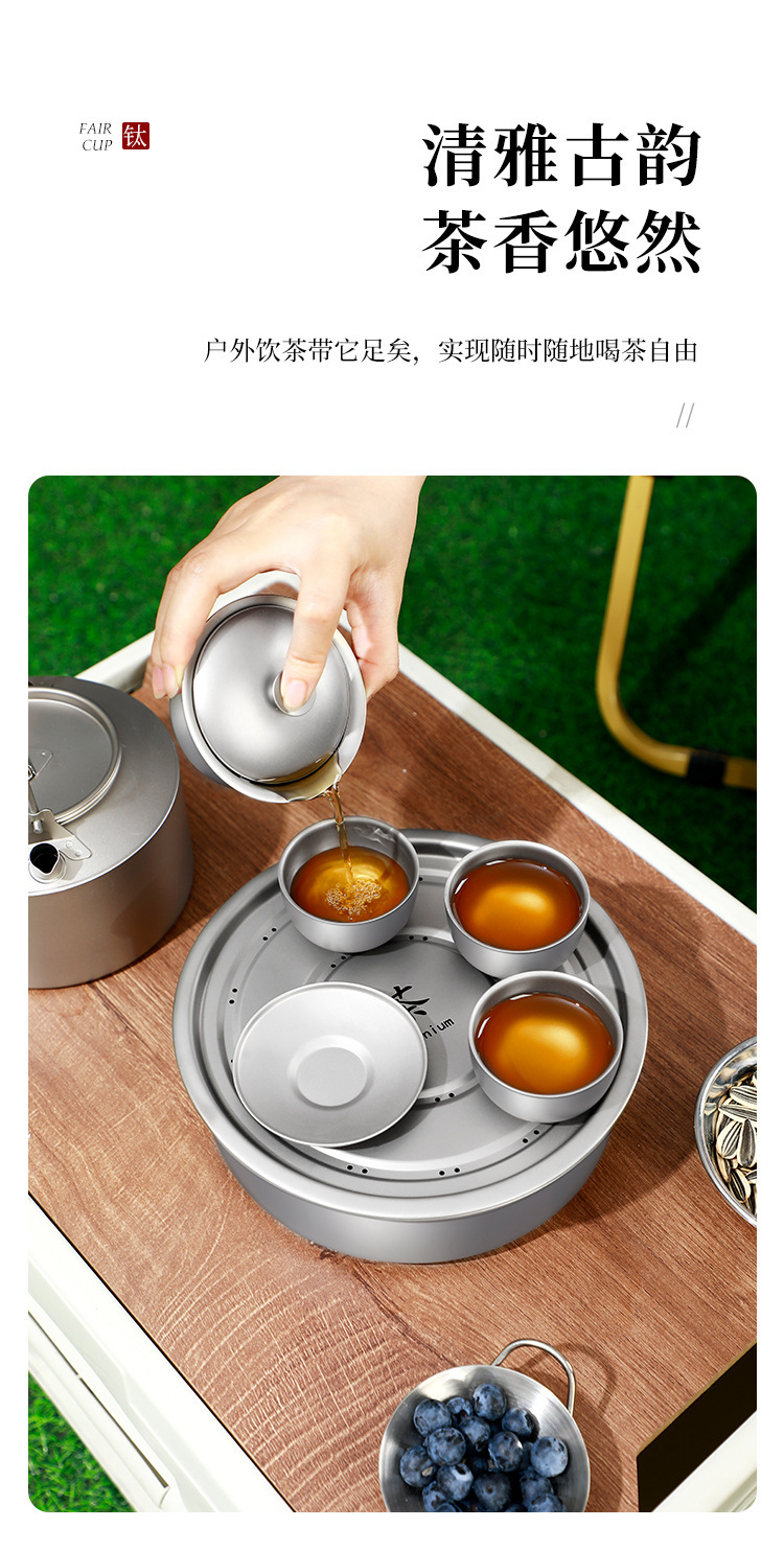 new pure titanium tea tray set high-grade tea cup outdoor camping tea set portable tea tray double-layer anti-scald tureen