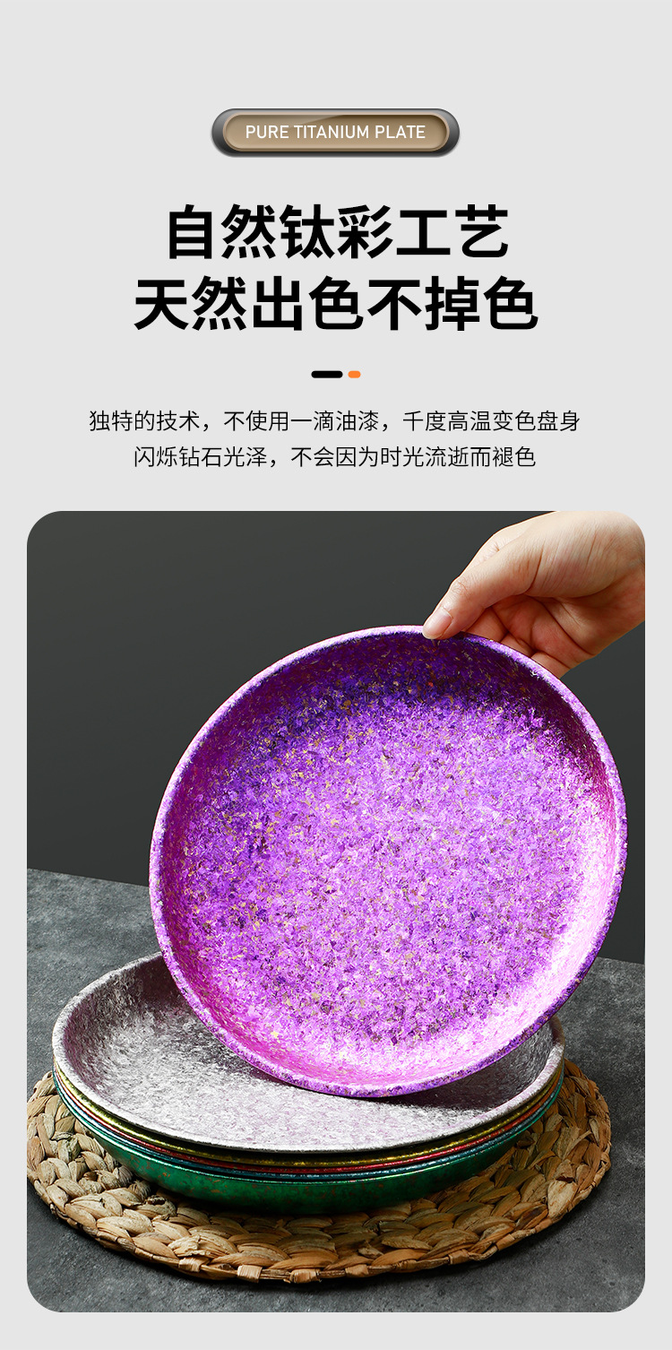 outdoor pure titanium plate children's dinner plate microwaveable portable camping tableware disc camping household kitchen fruit dish