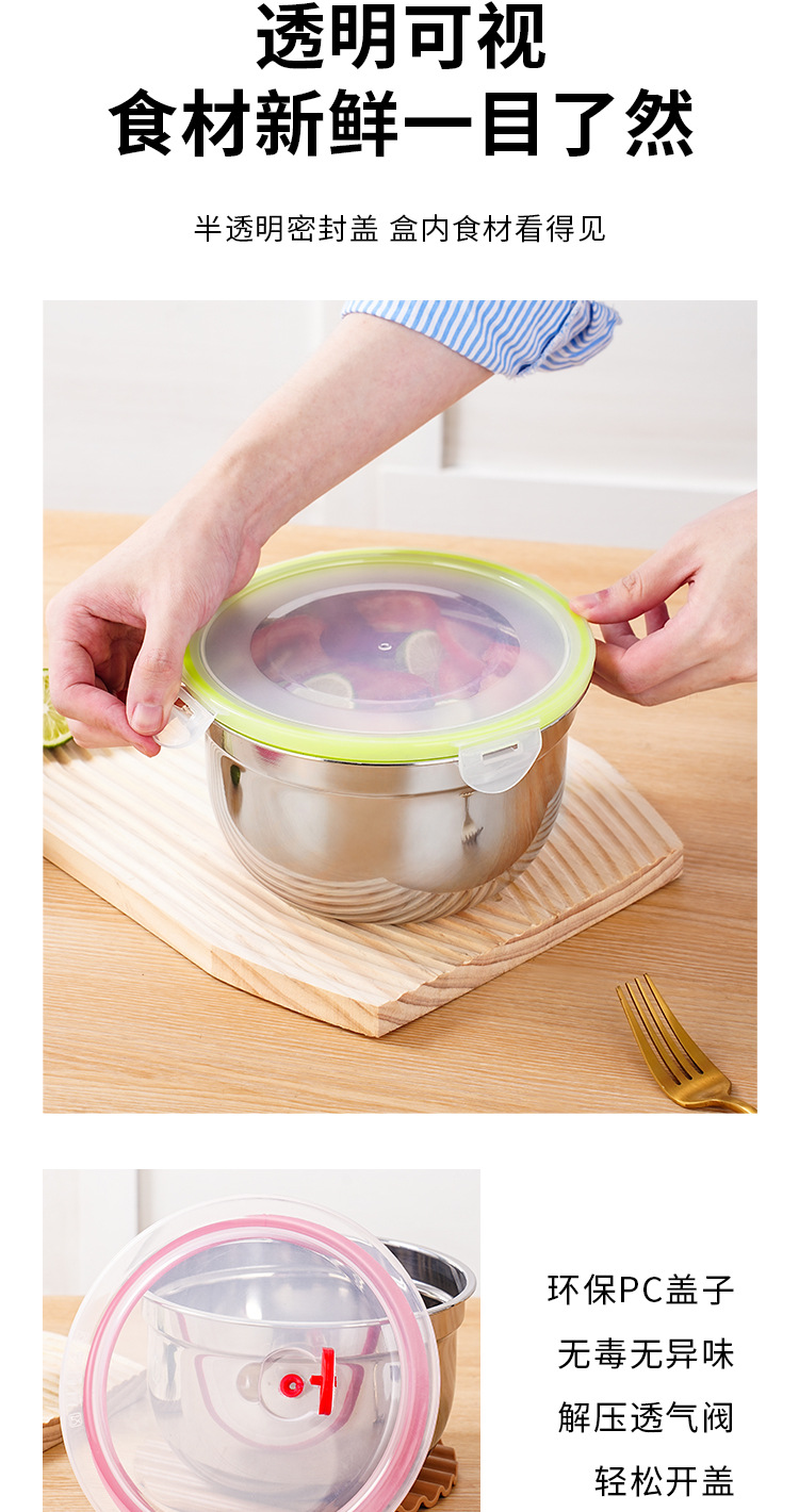 stainless steel crisper with lid freshness bowl large capacity refrigerated round with lid storage box leak-proof seal
