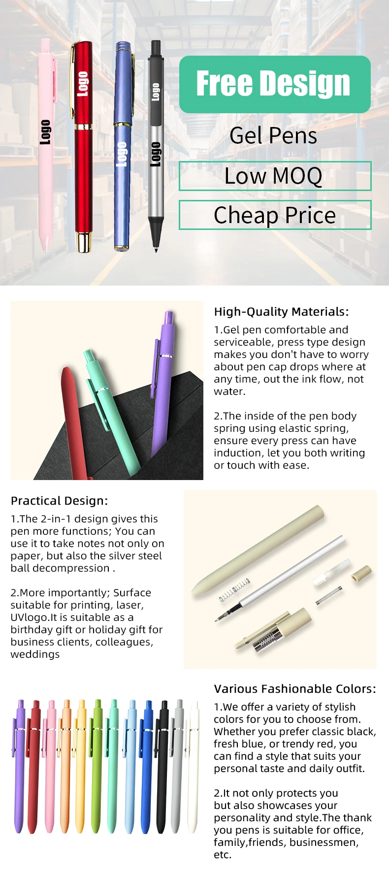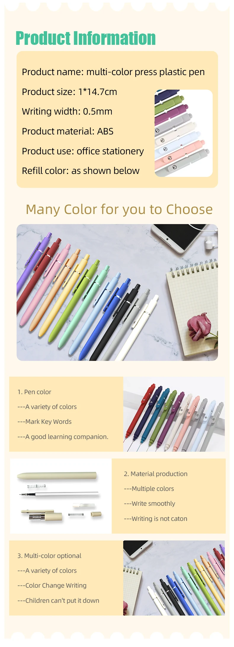 Material/size/shape/color/packing etc