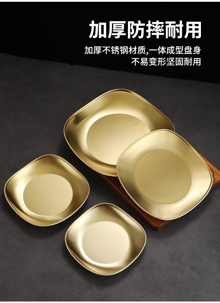 korean 304 stainless steel square barbecue plate gold barbecue plate hot pot food plate snack plate dessert plate light plate