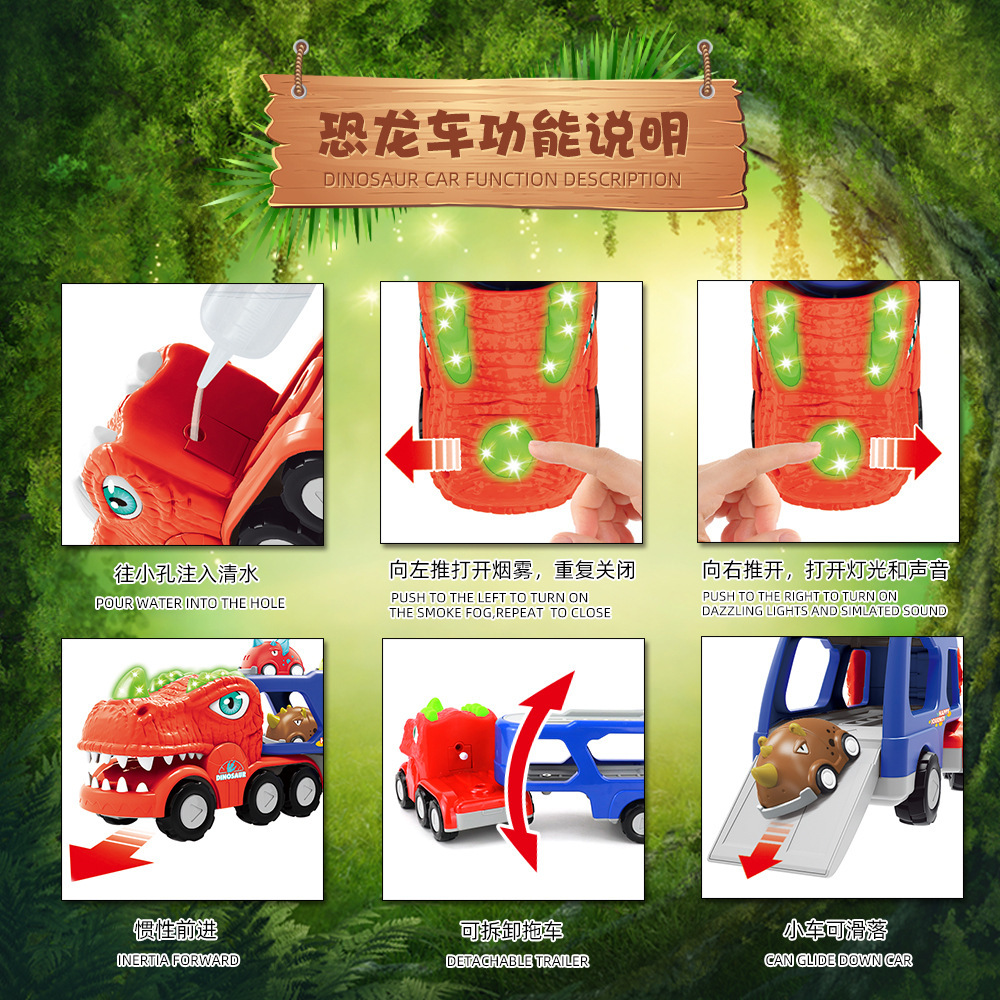 G0111 Nose Horn Dinosaur Inertia Tugger (without spray function) with 4 Rebound Dinosaur Cars: Color Box