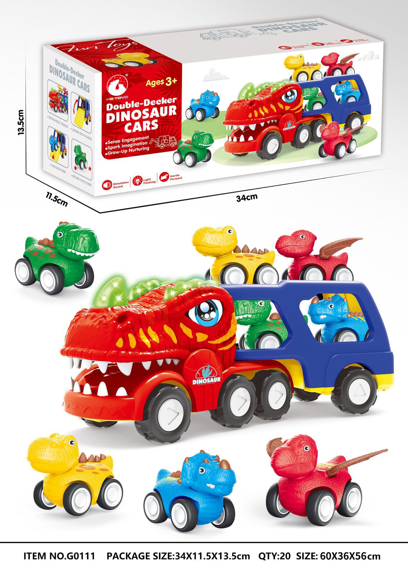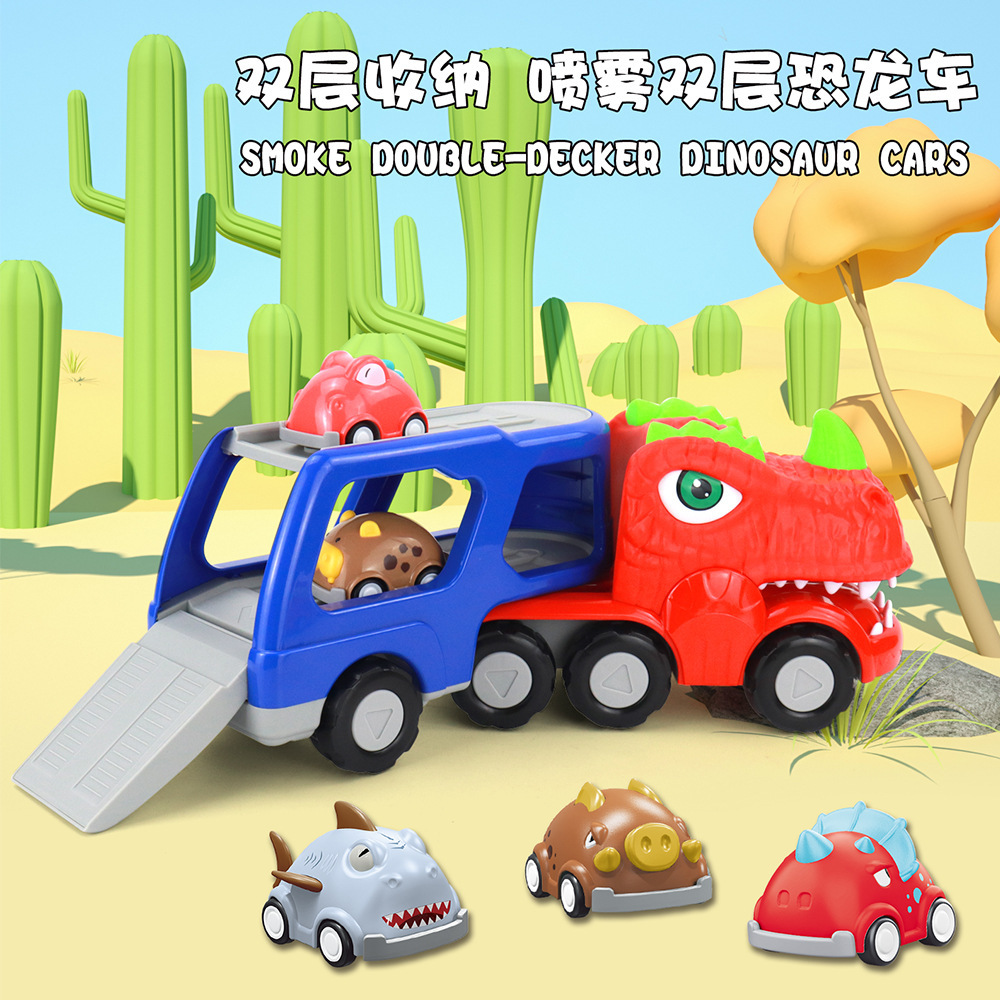 G0113 Sound and Light Inertial Triconodontosaurus Double-Decker Car + 4 Rebound Dinosaur Figures: Secret Box