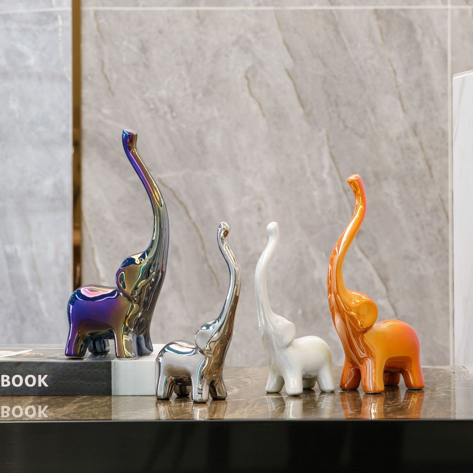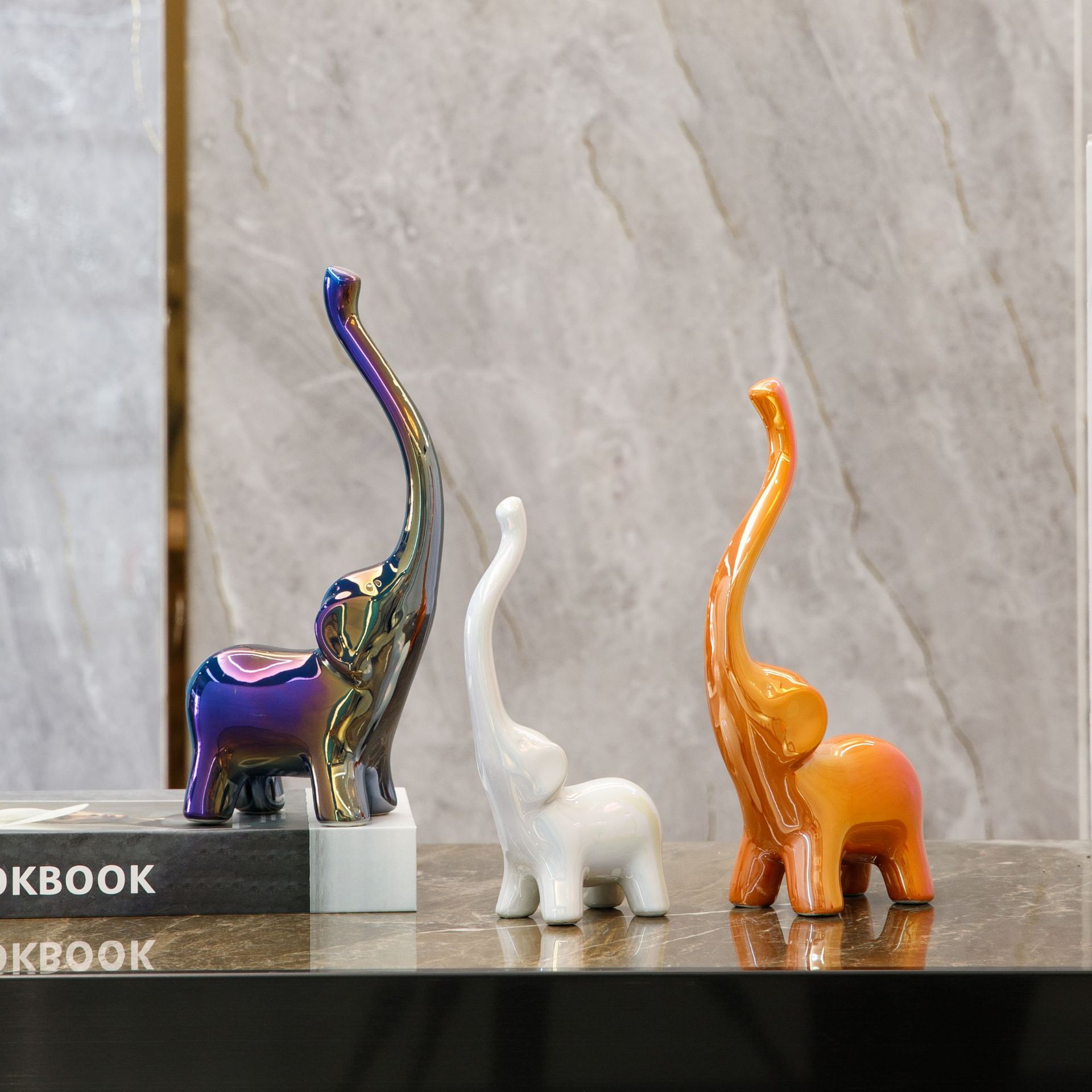 three colorful elephant sets