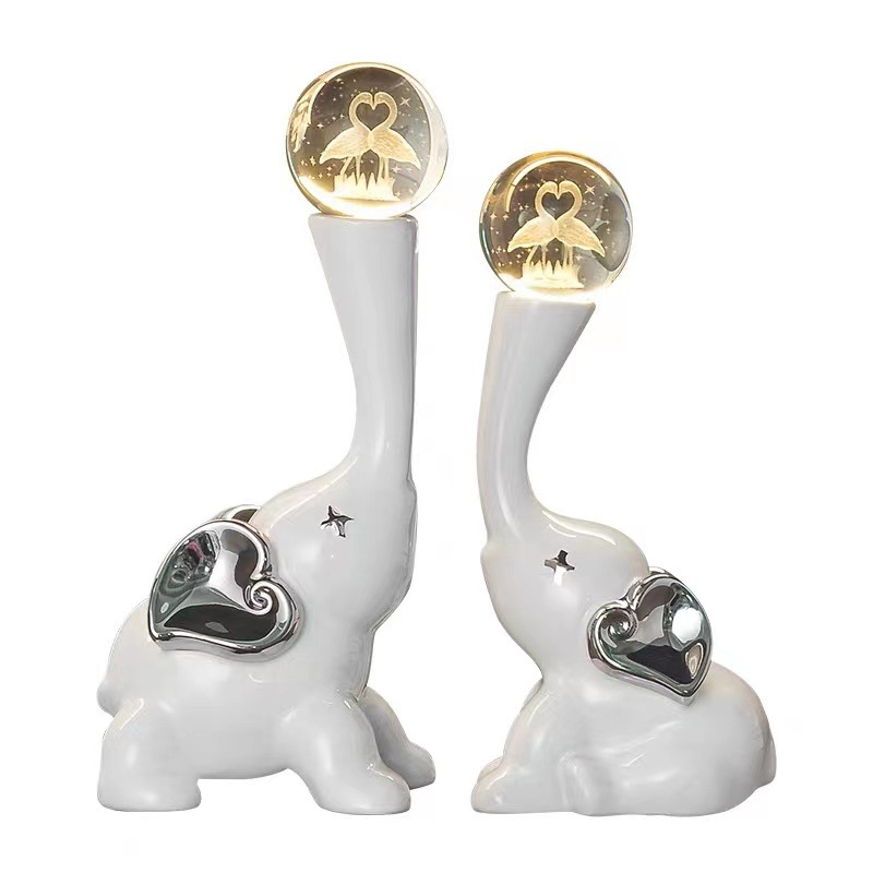 lucky elephant silver ornaments + crystal ball pair