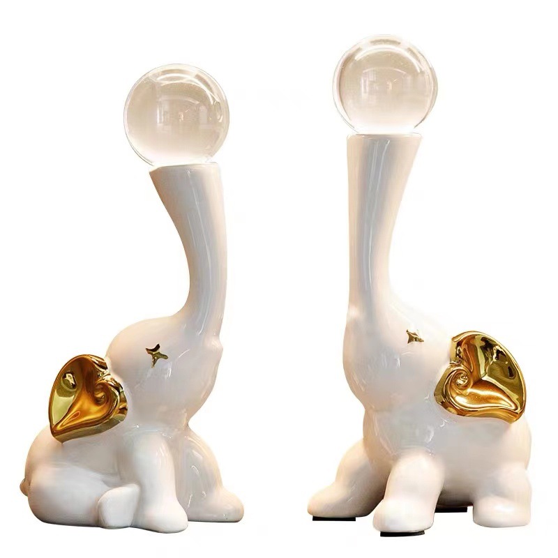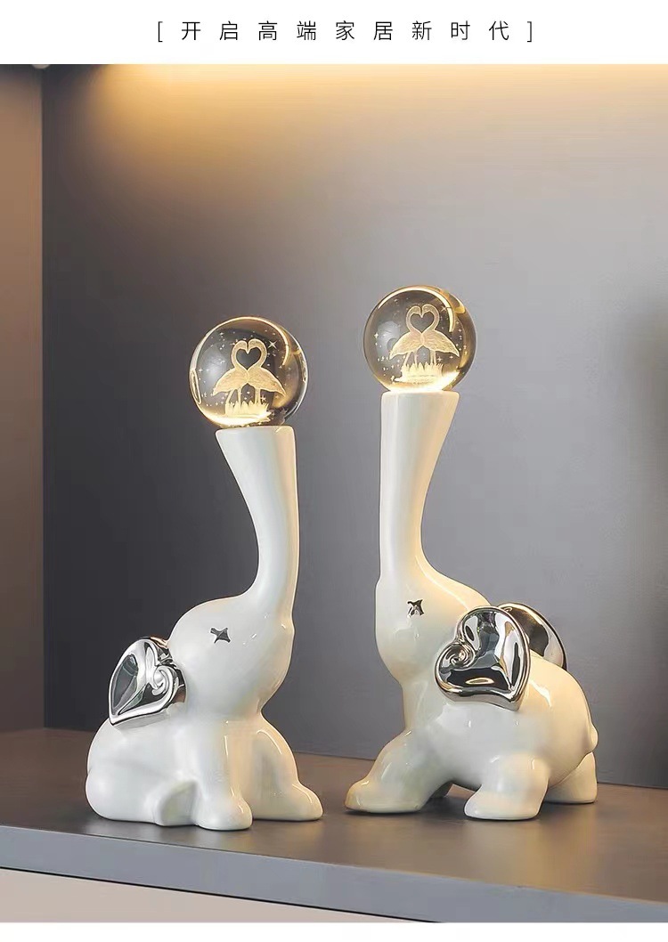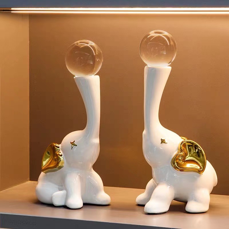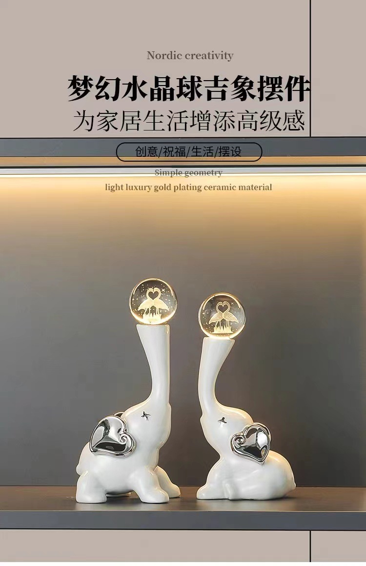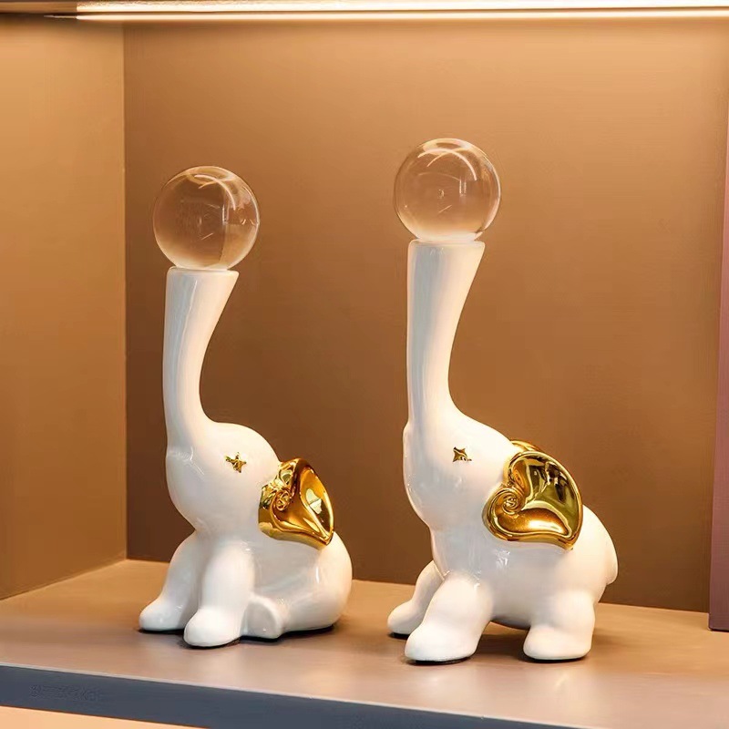 lucky elephant golden ornaments + crystal ball pair