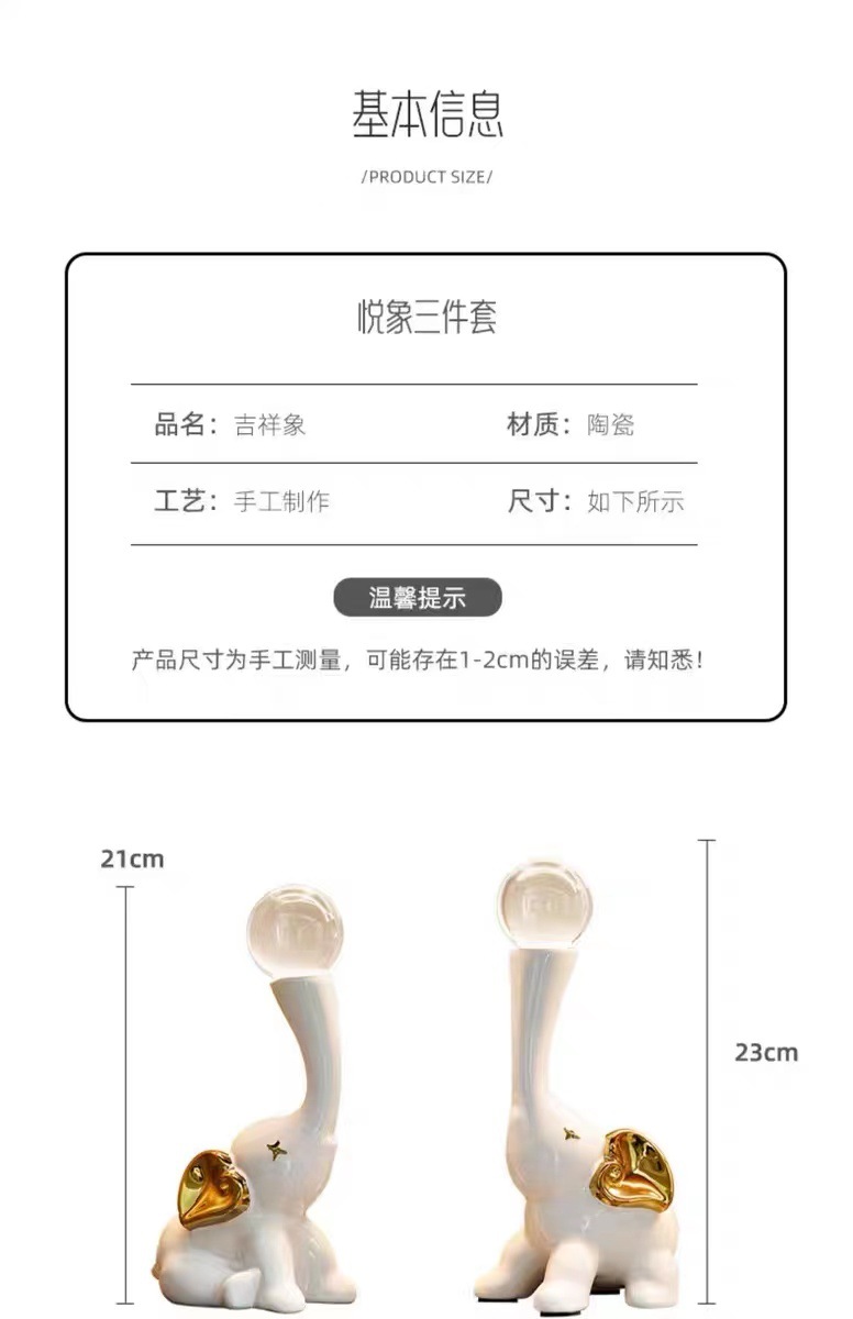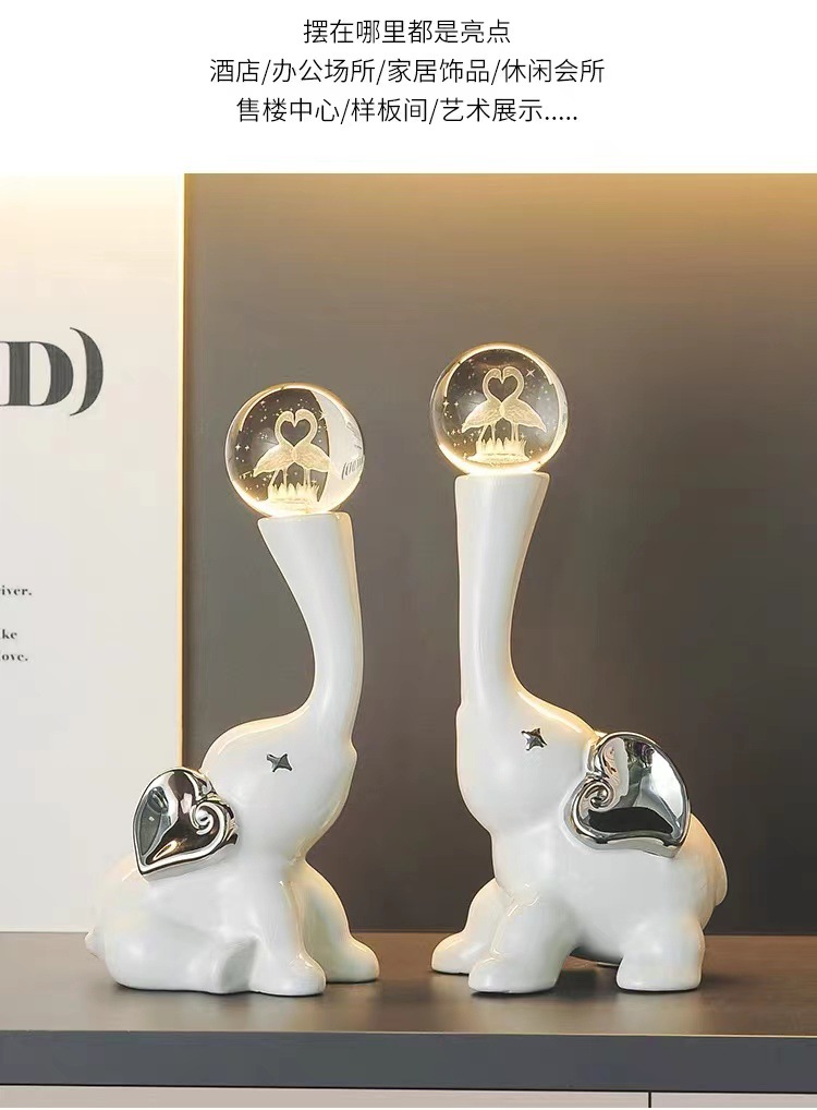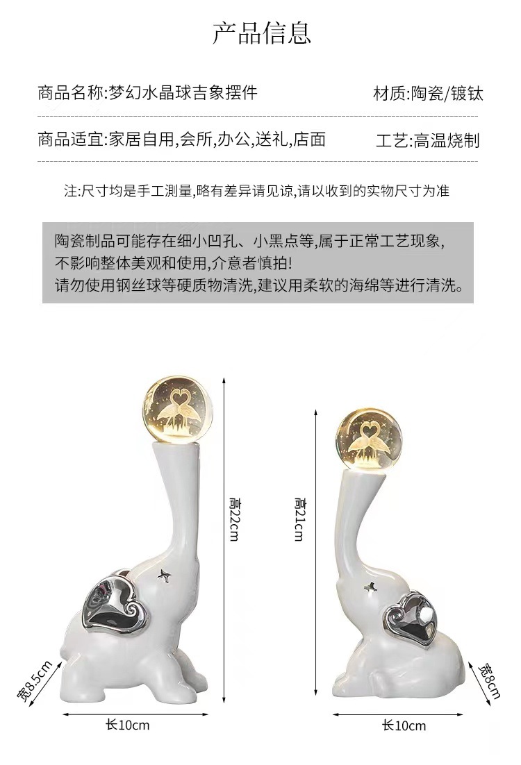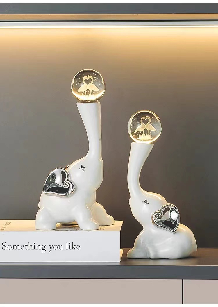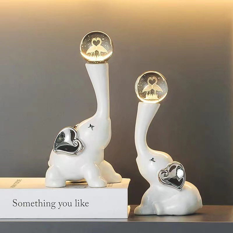 lucky elephant golden ornaments + crystal ball pair