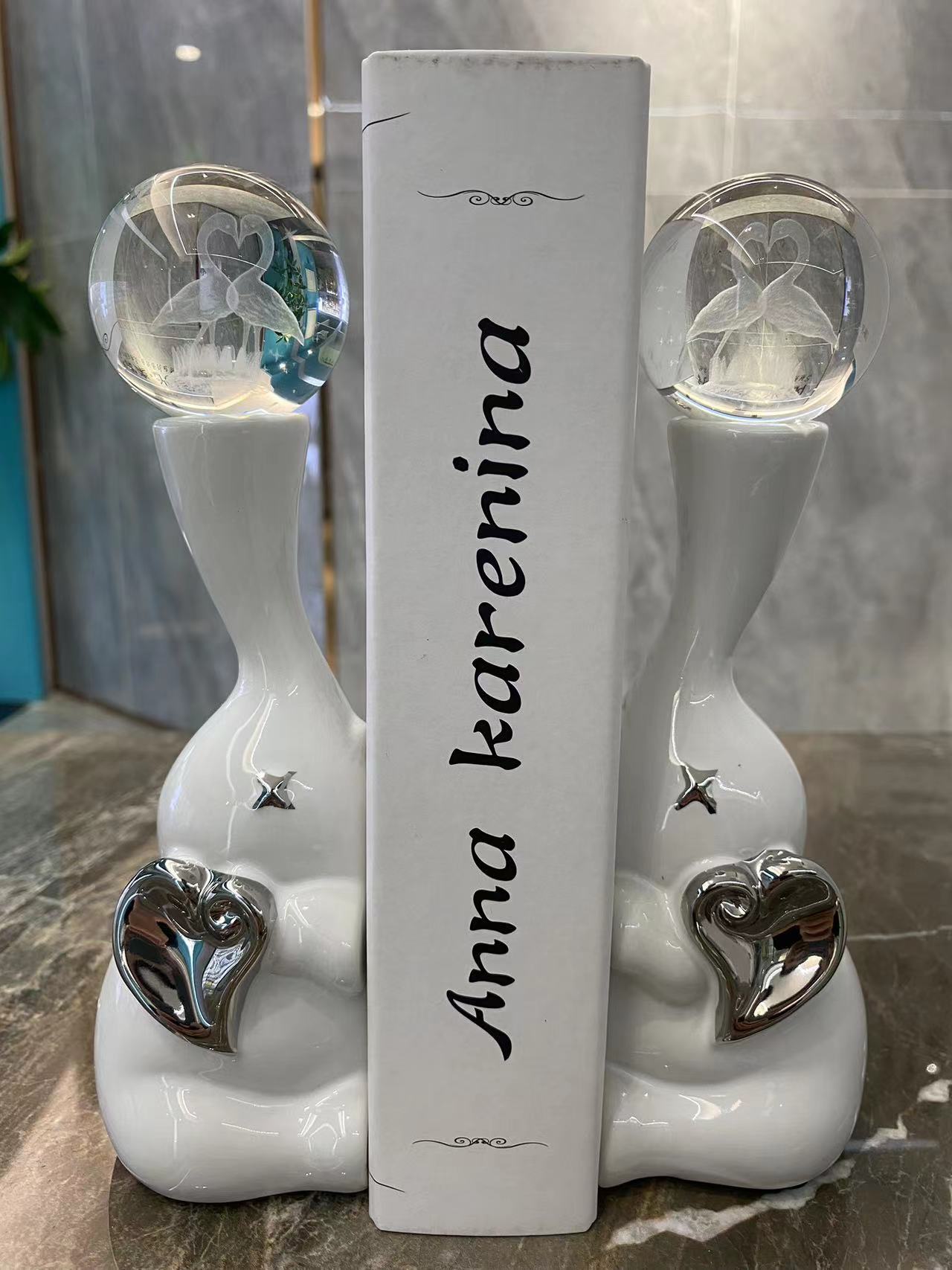 elephant silver bookend crystal ball