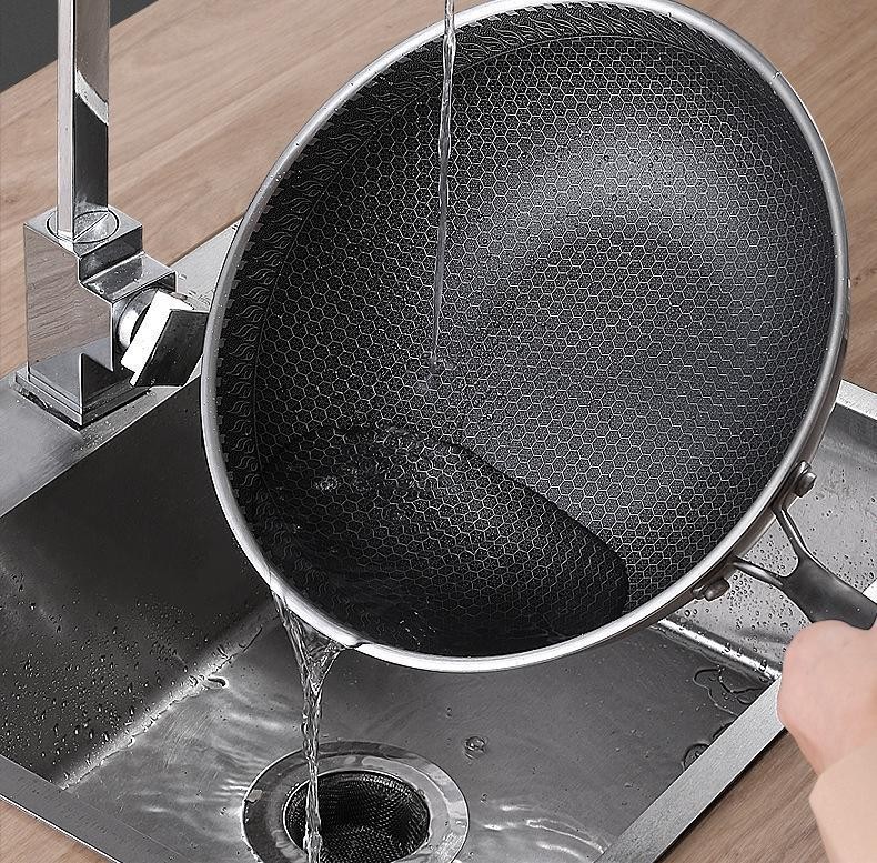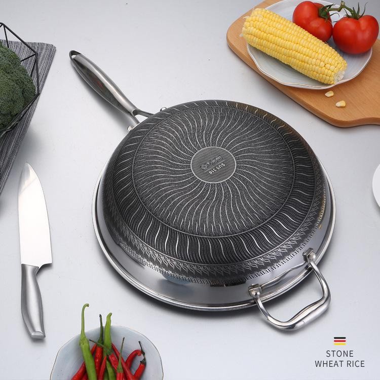 three-layer steel 304 wok non-stick pan household wok non-coated honeycomb non-stick pan kata pan