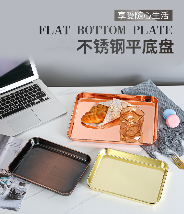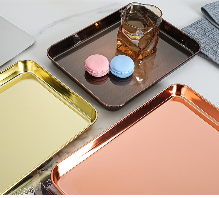 electroplated golden rectangular plate stainless steel pastry plate nordic ins jewelry storage storage small tray household