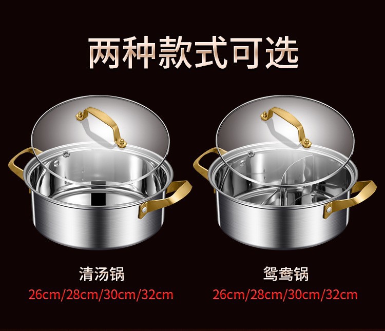 factory three-layer steel two-flavor hot pot 304 stainless steel hot pot basin household induction cooker dedicated shabu-shabu large capacity hot pot