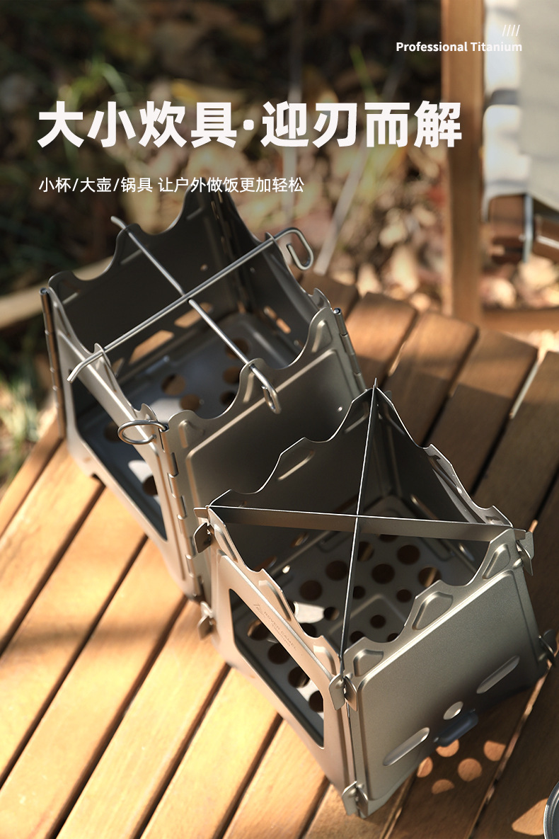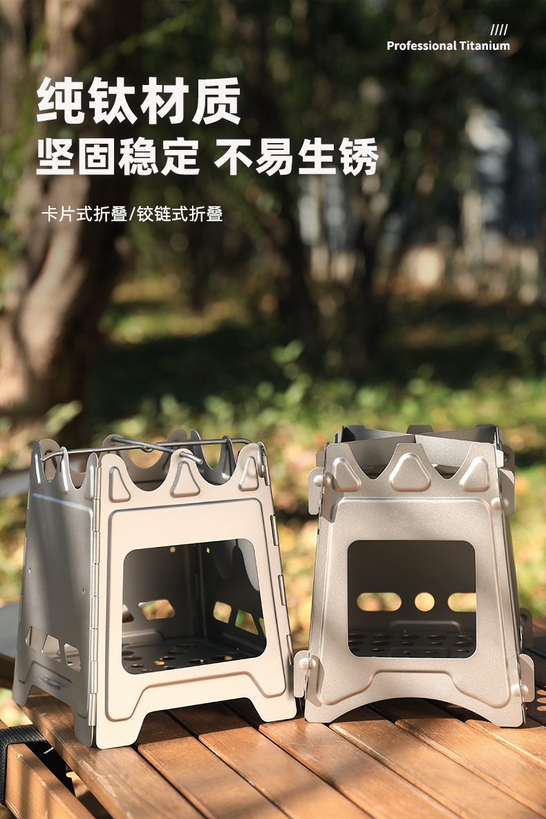 outdoor firewood stove camping barbecue stove camping portable folding card stove titanium alloy stove titanium stove e18