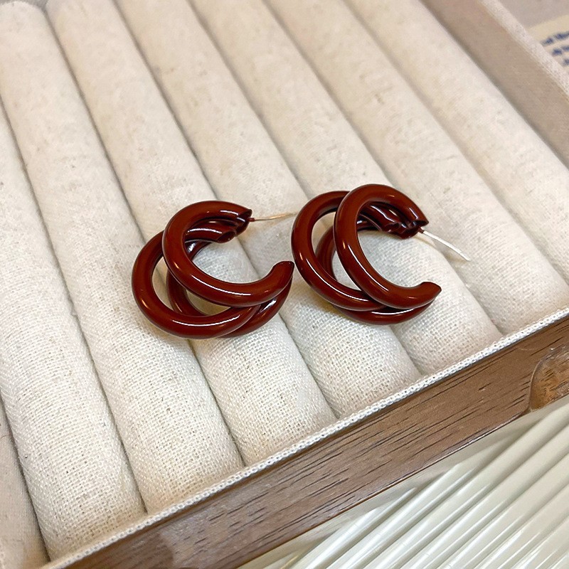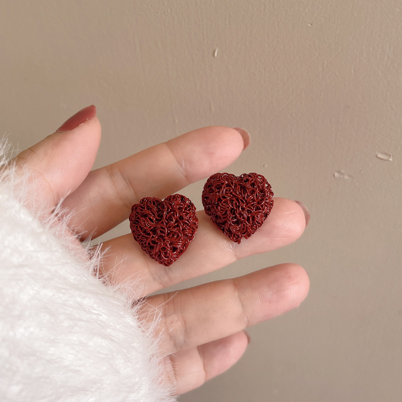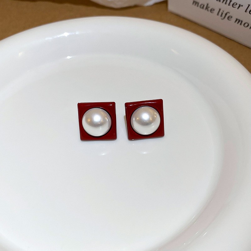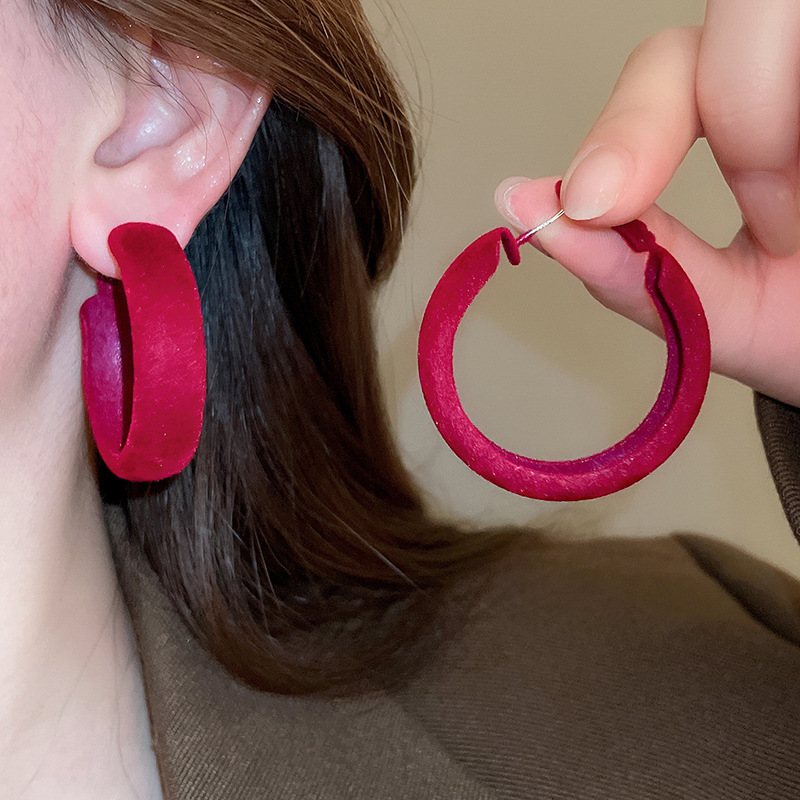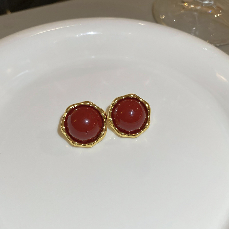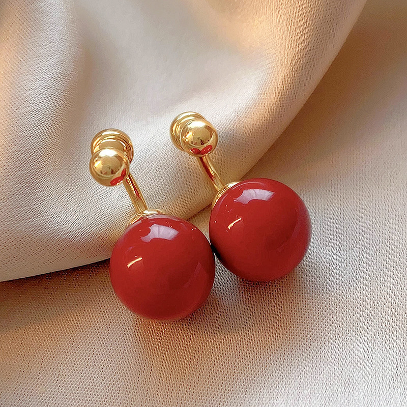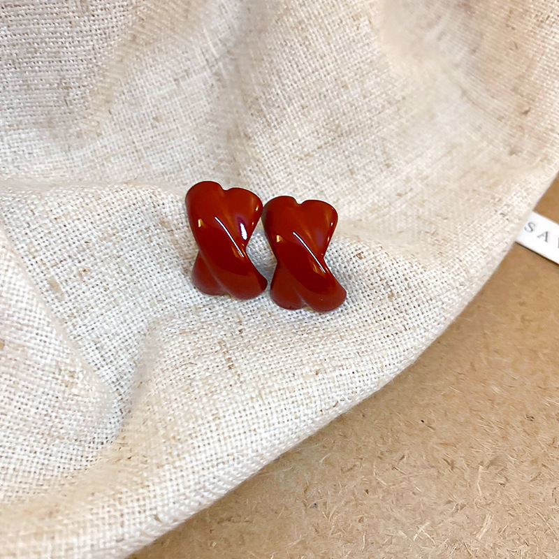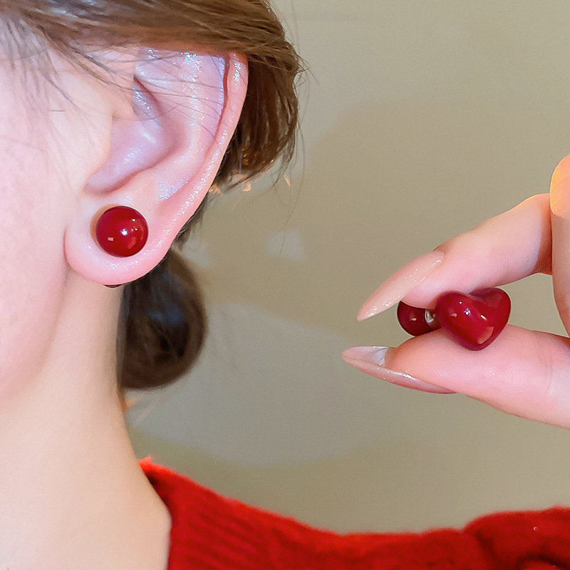 11# silver needle -- ear ring-red