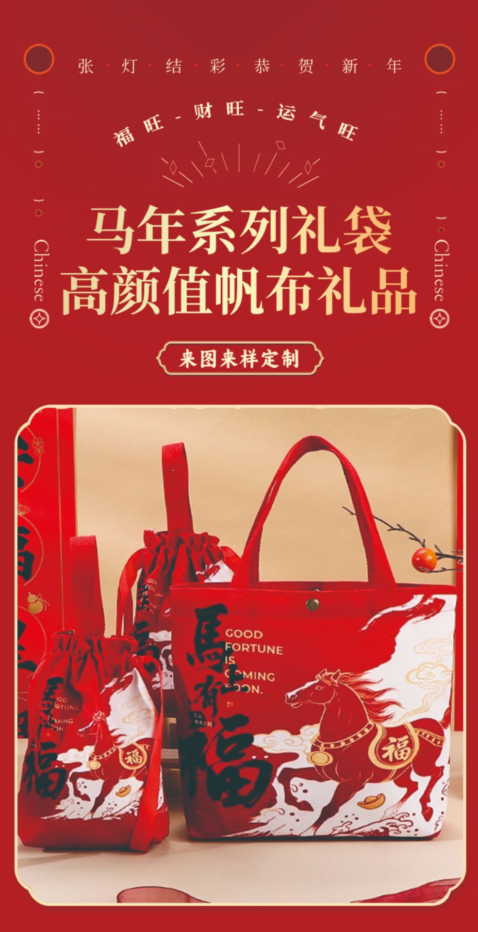 [happy new year] red; [drawstring version] large