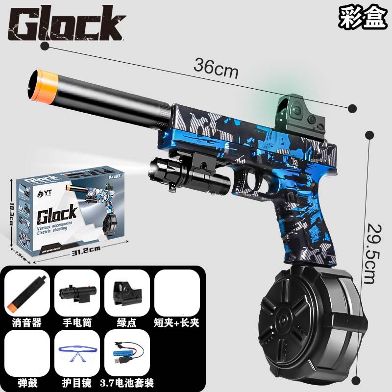 [e-commerce box] glock printing blue-manual electric full configuration [short clip long clip ammunition drum model + flashlight + holographic] g-3