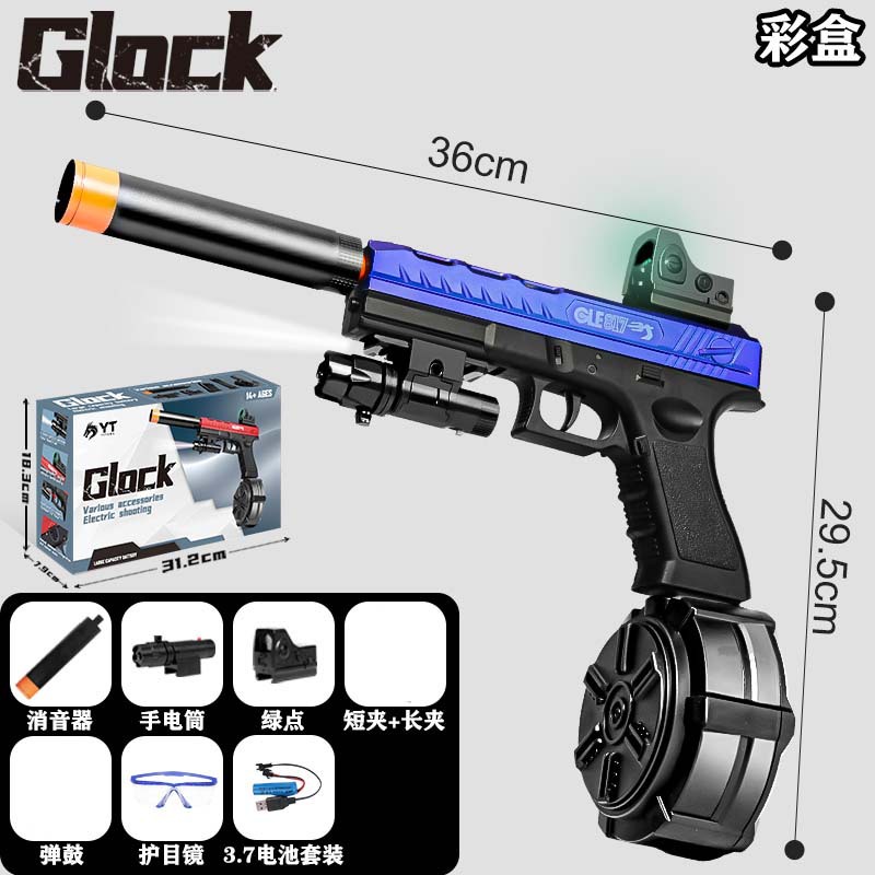 [english color box] glock sea god version blue black-manual electric full with [short clip long clip ammunition drum model + flashlight + holographic] gh-