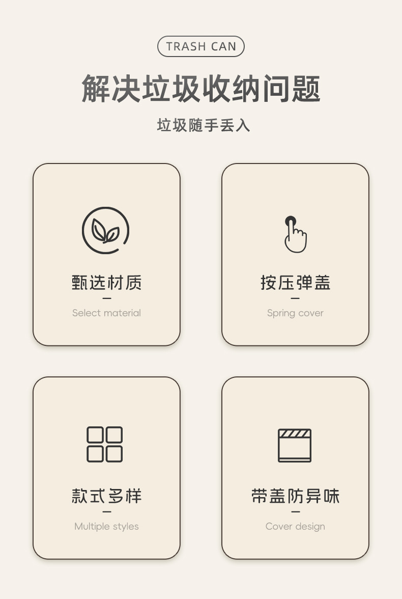 log style square trash can [white] short with feet