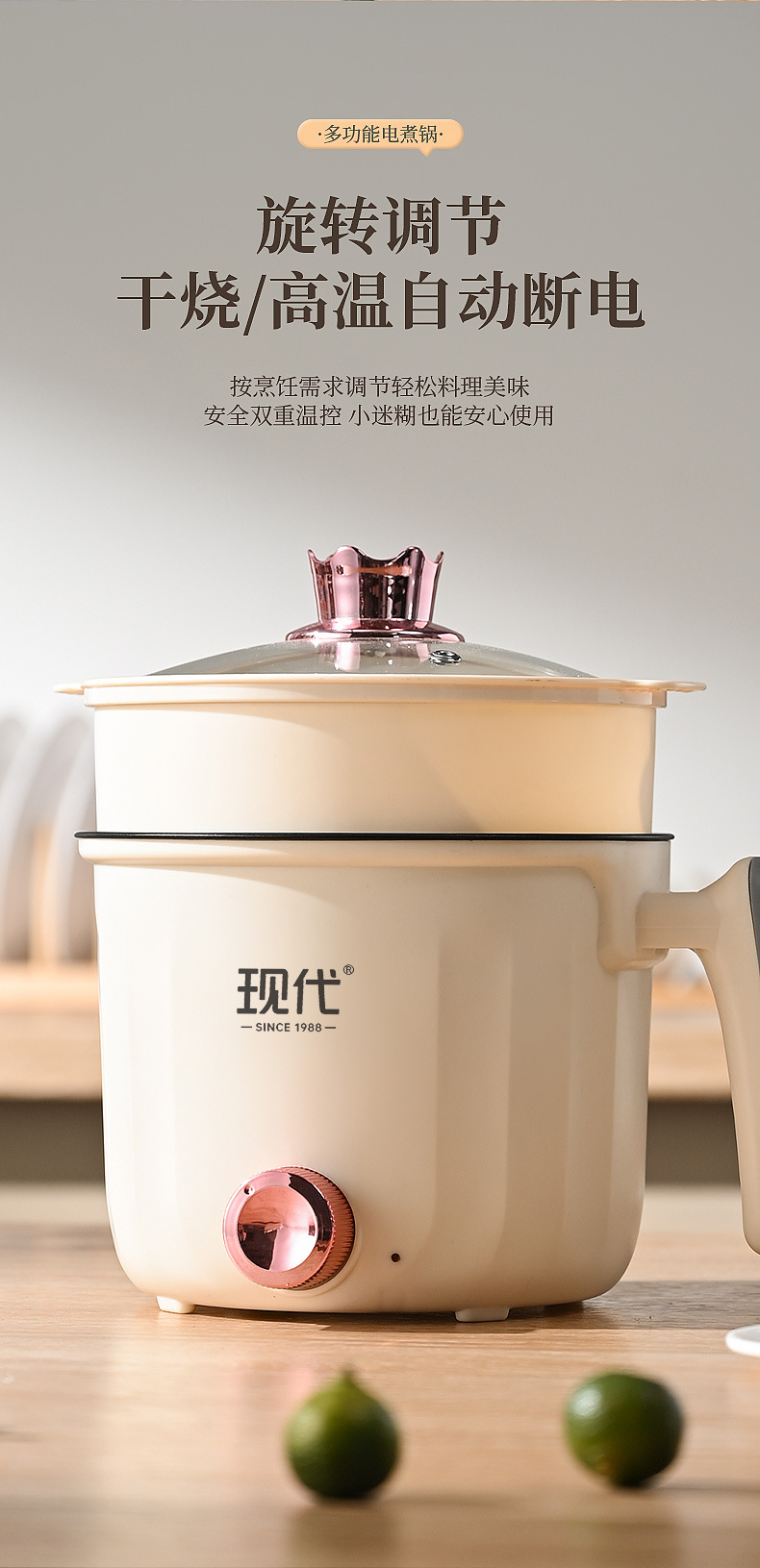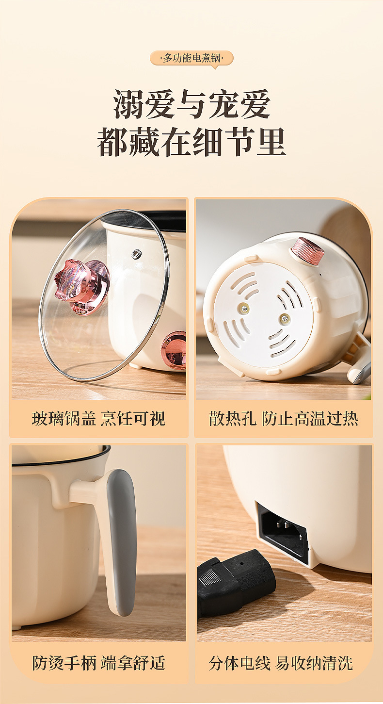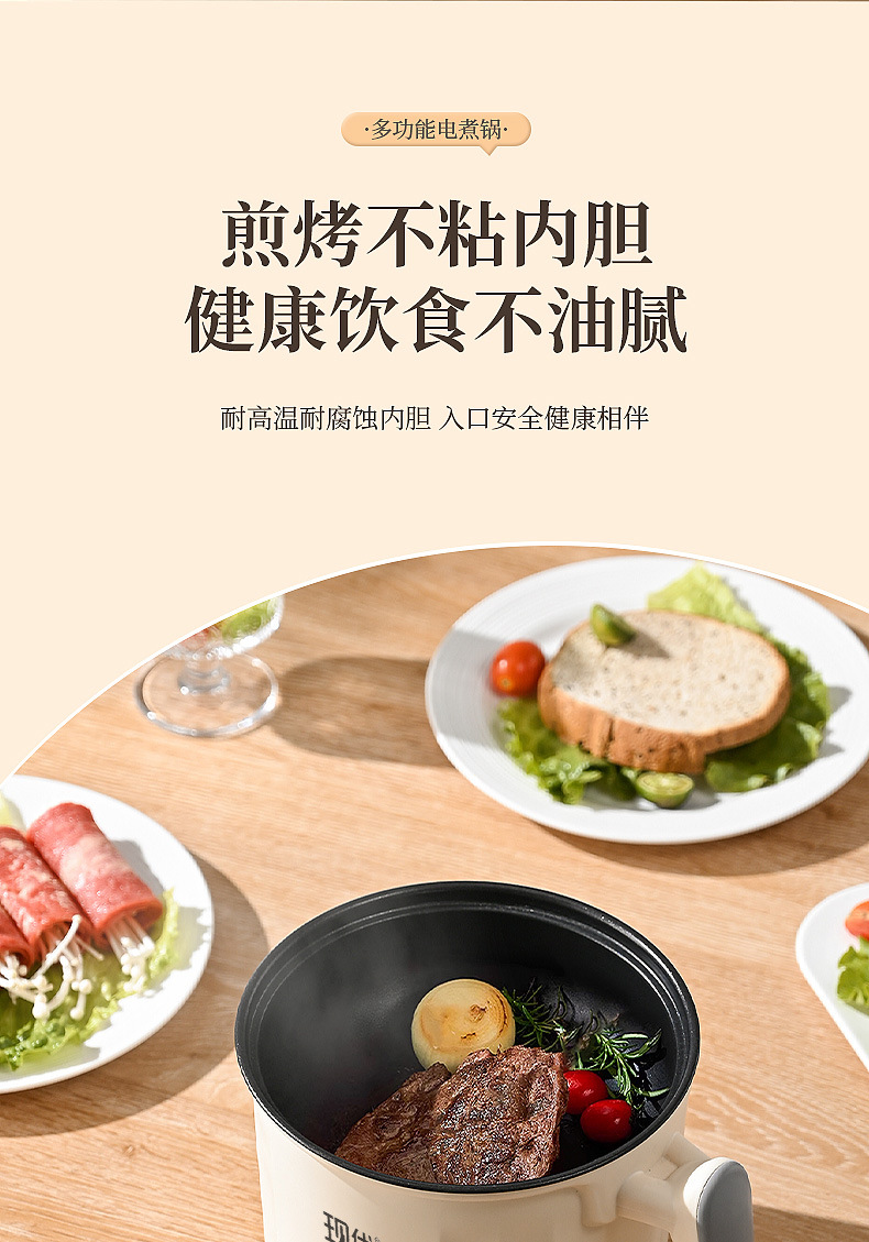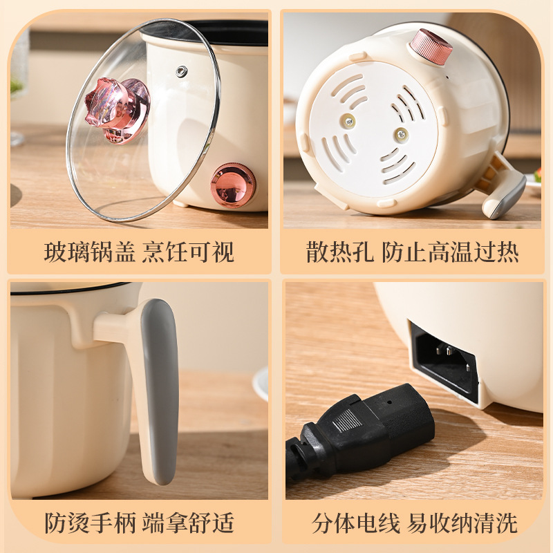 Modern rhombus single-handle electric pot with low power for dormitory home use, steaming, frying, pan-frying, non-stick multi-functional electric cooking pot, gift