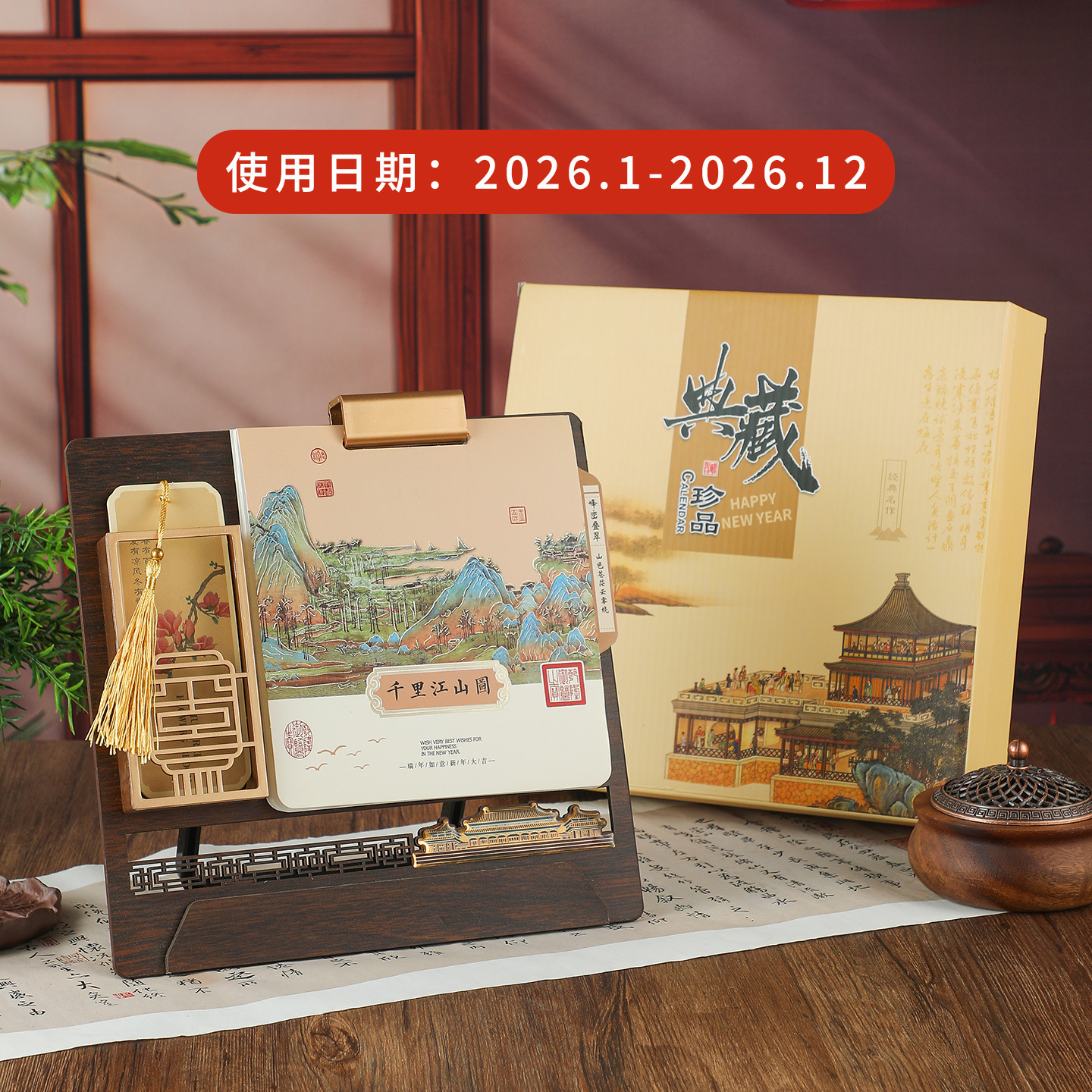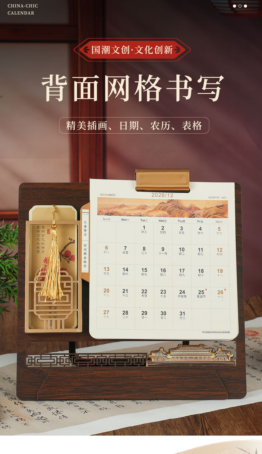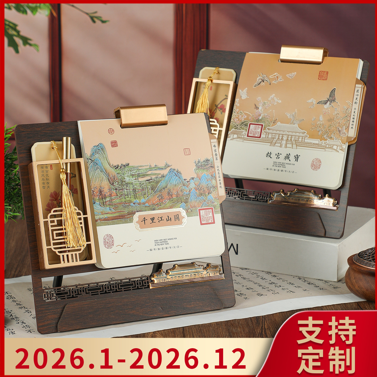 spade wood grain (desk calendar + pen holder + phnom penh)-thousand-li landscape