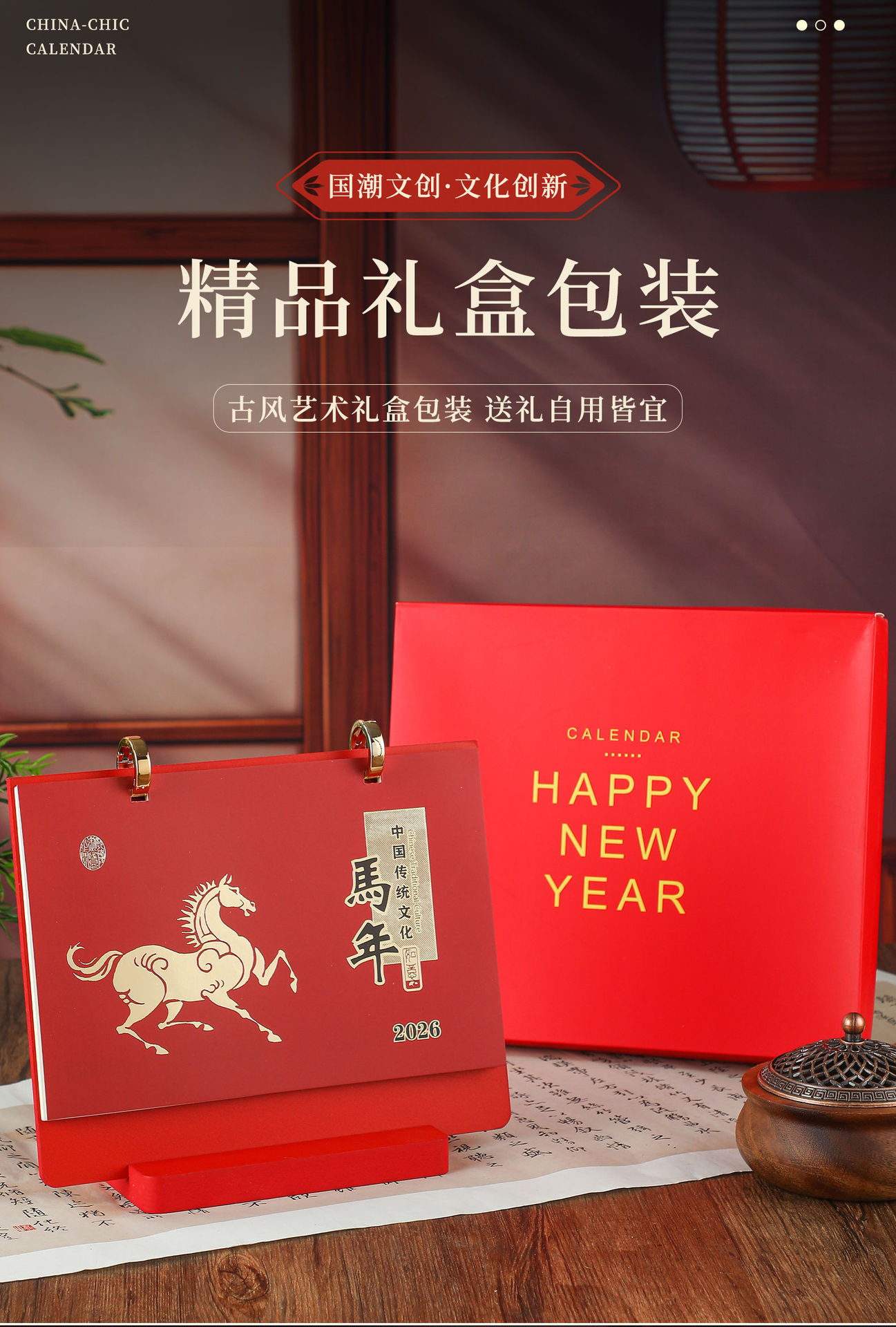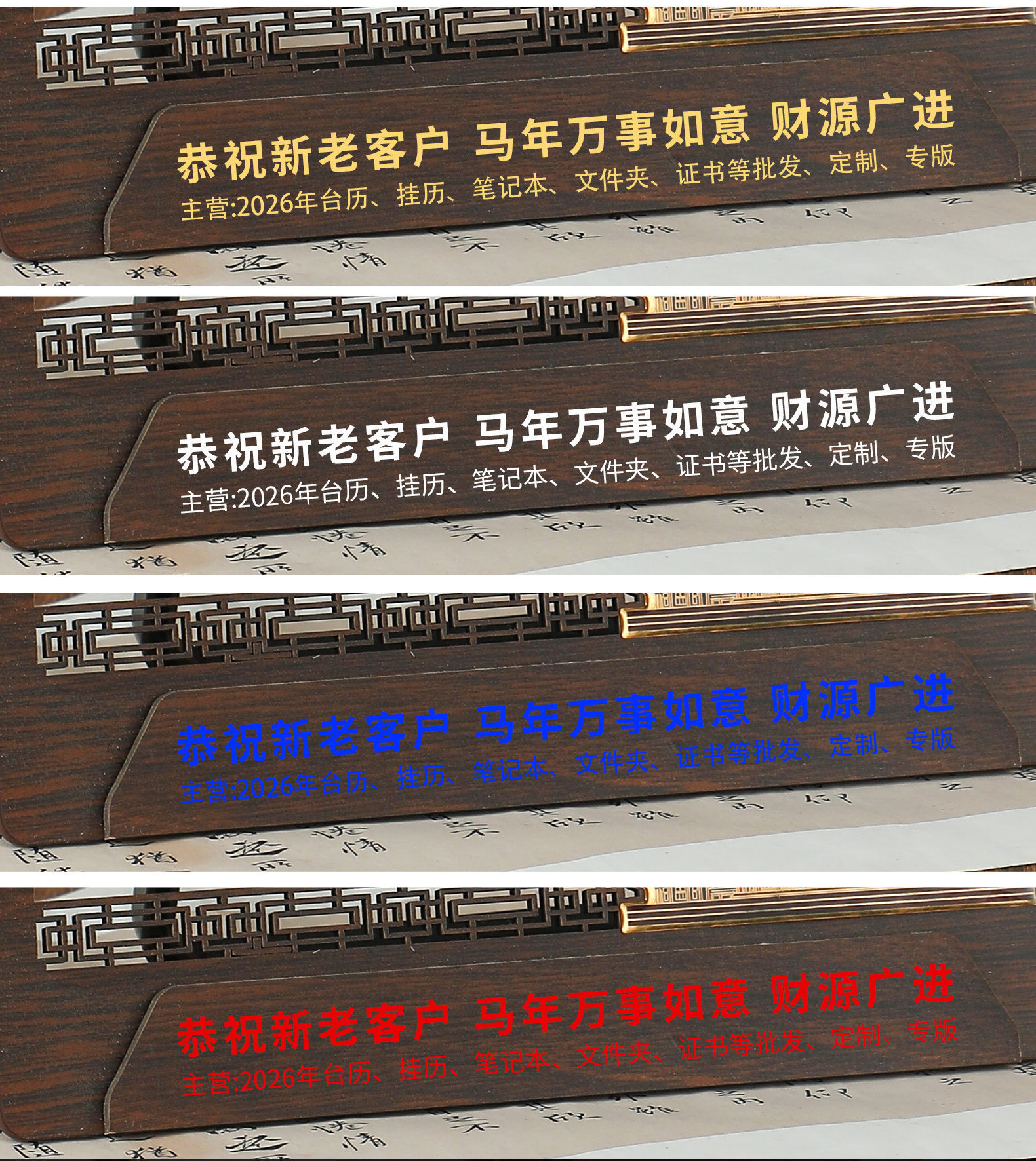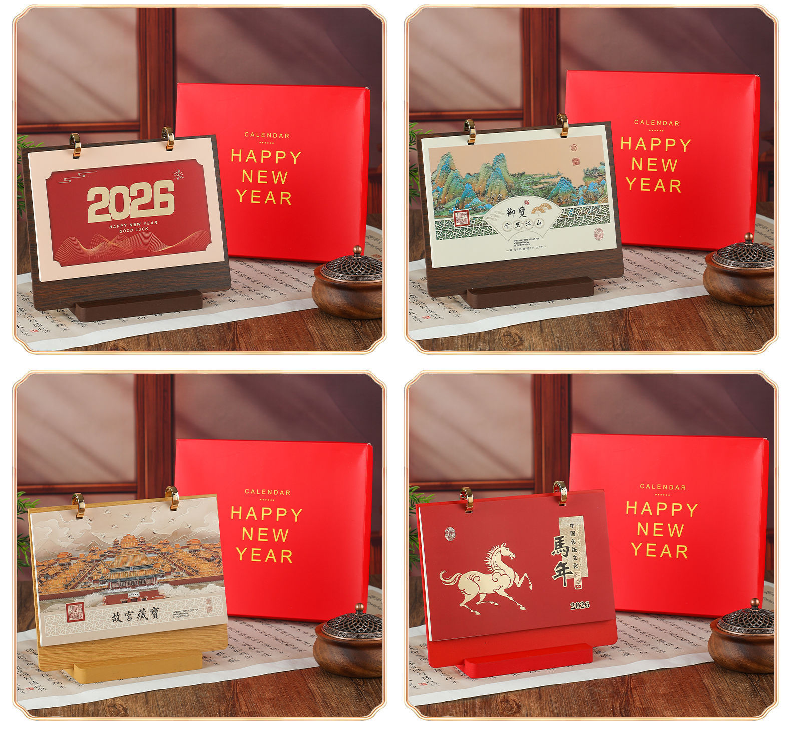 mahogany texture (desk calendar + pen holder + phnom penh)-year of the horse 2026
