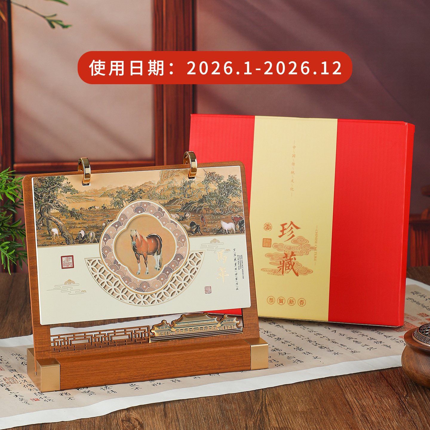 the pattern of walnut (desk calendar)-year of the horse 2026