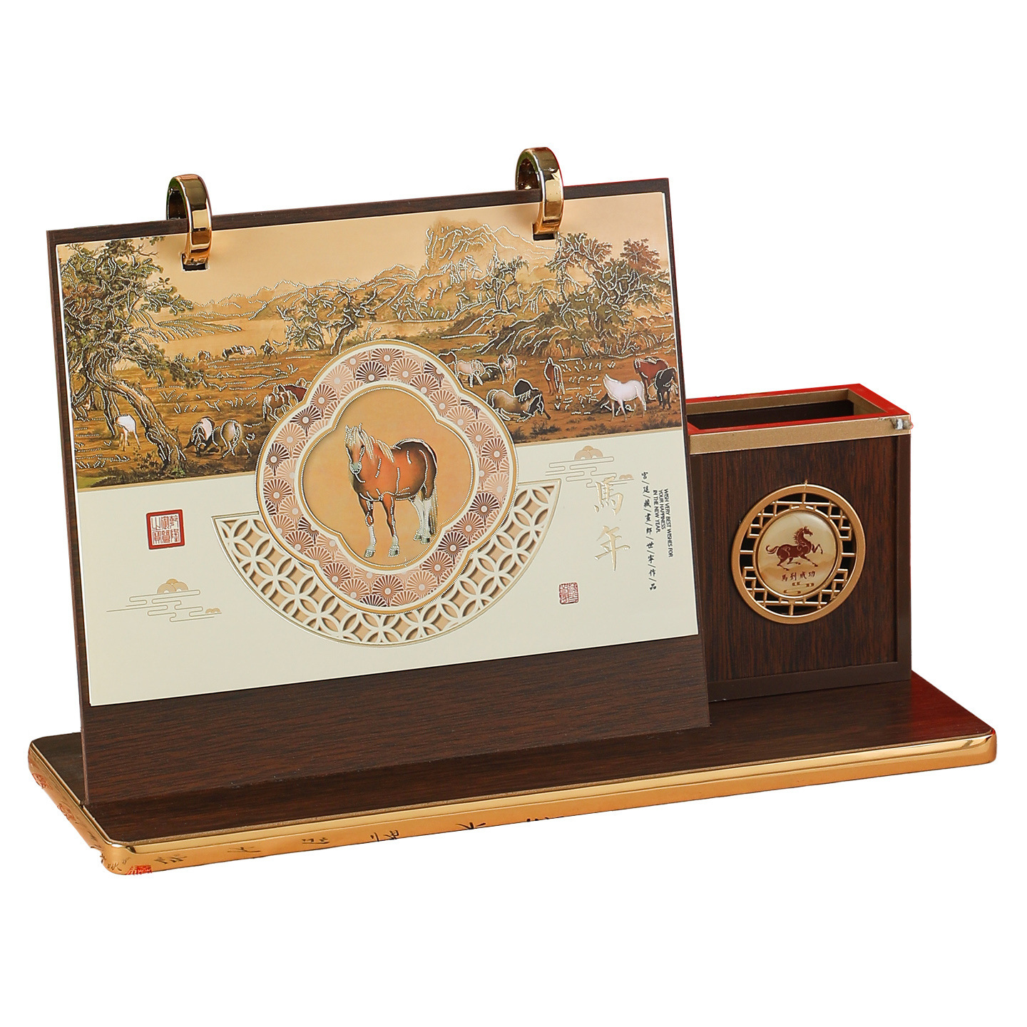 spade wood grain (desk calendar + pen holder + phnom penh)-year of horse