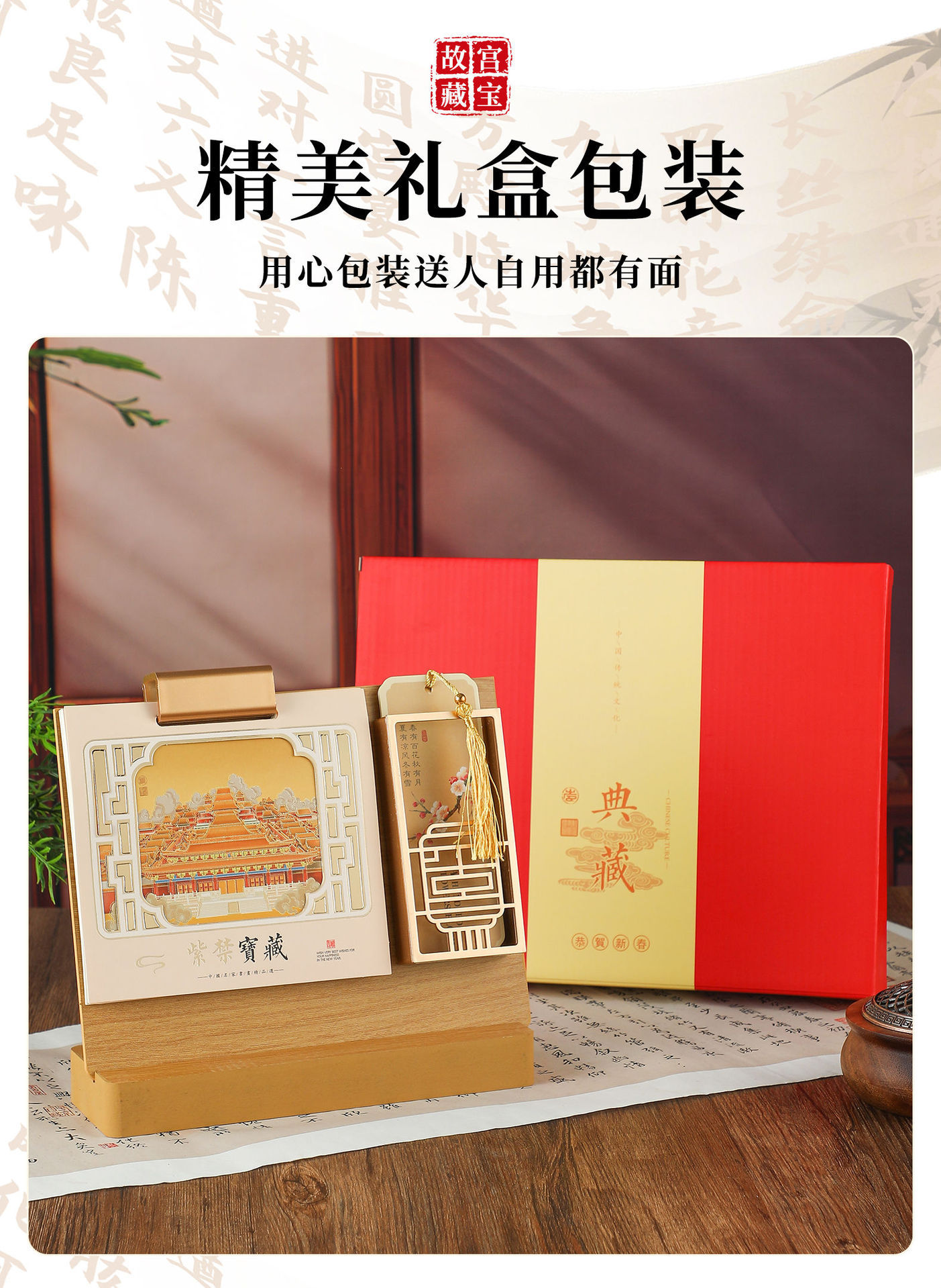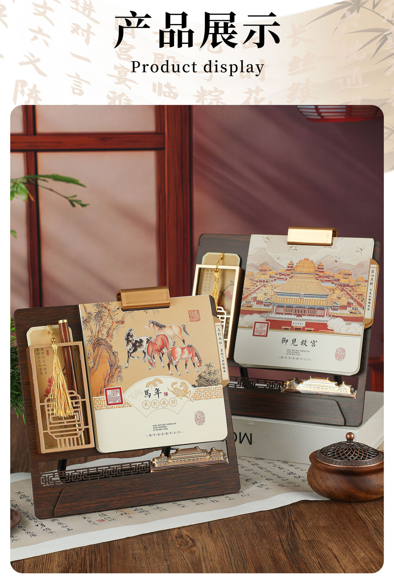 spade wood grain (desk calendar + pen holder + note)-treasure collection in the palace museum