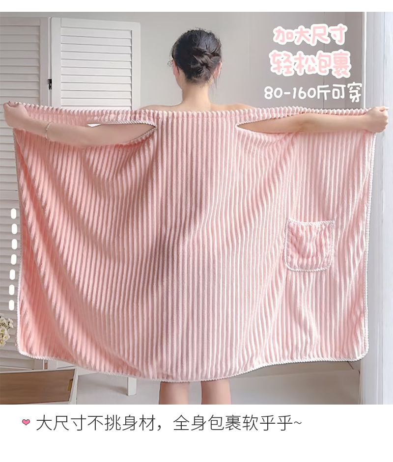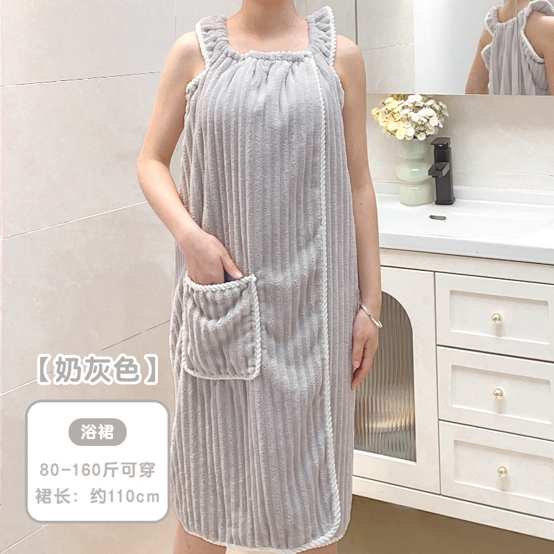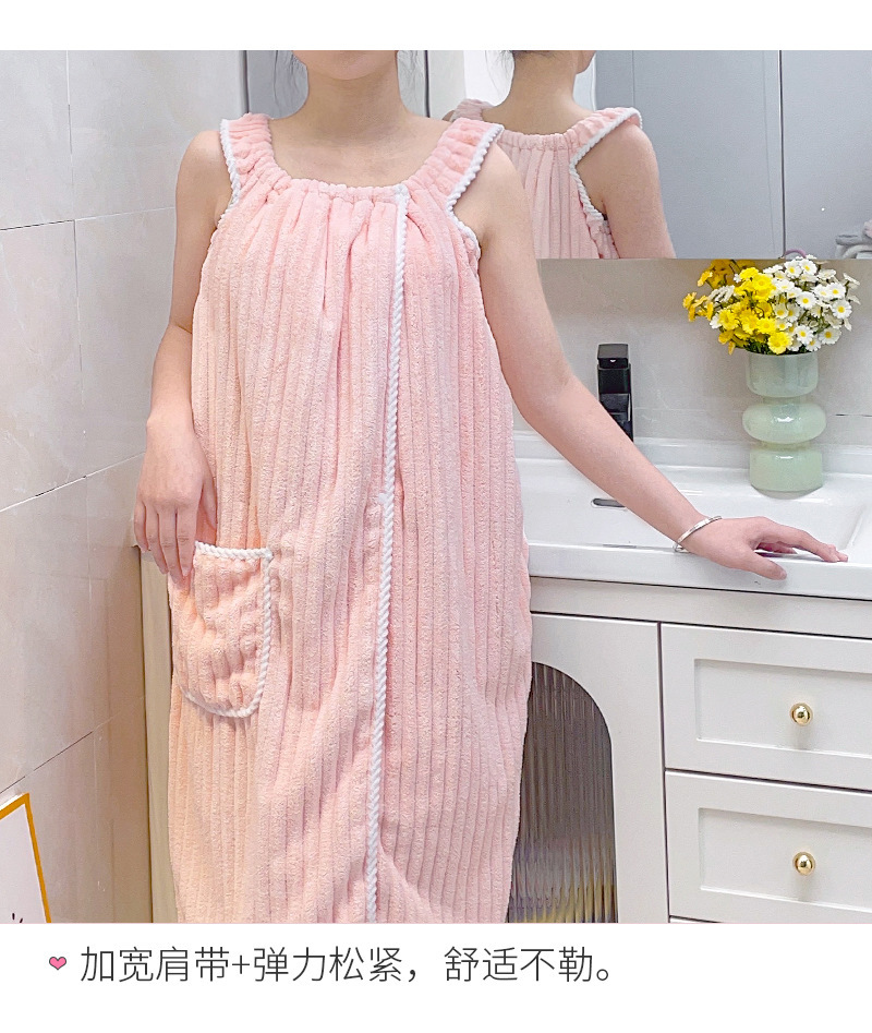 Coral flannel bathrobe can be worn or wrapped around the bath towel, thickened strap bathrobe for women, home use, quick absorption of water.