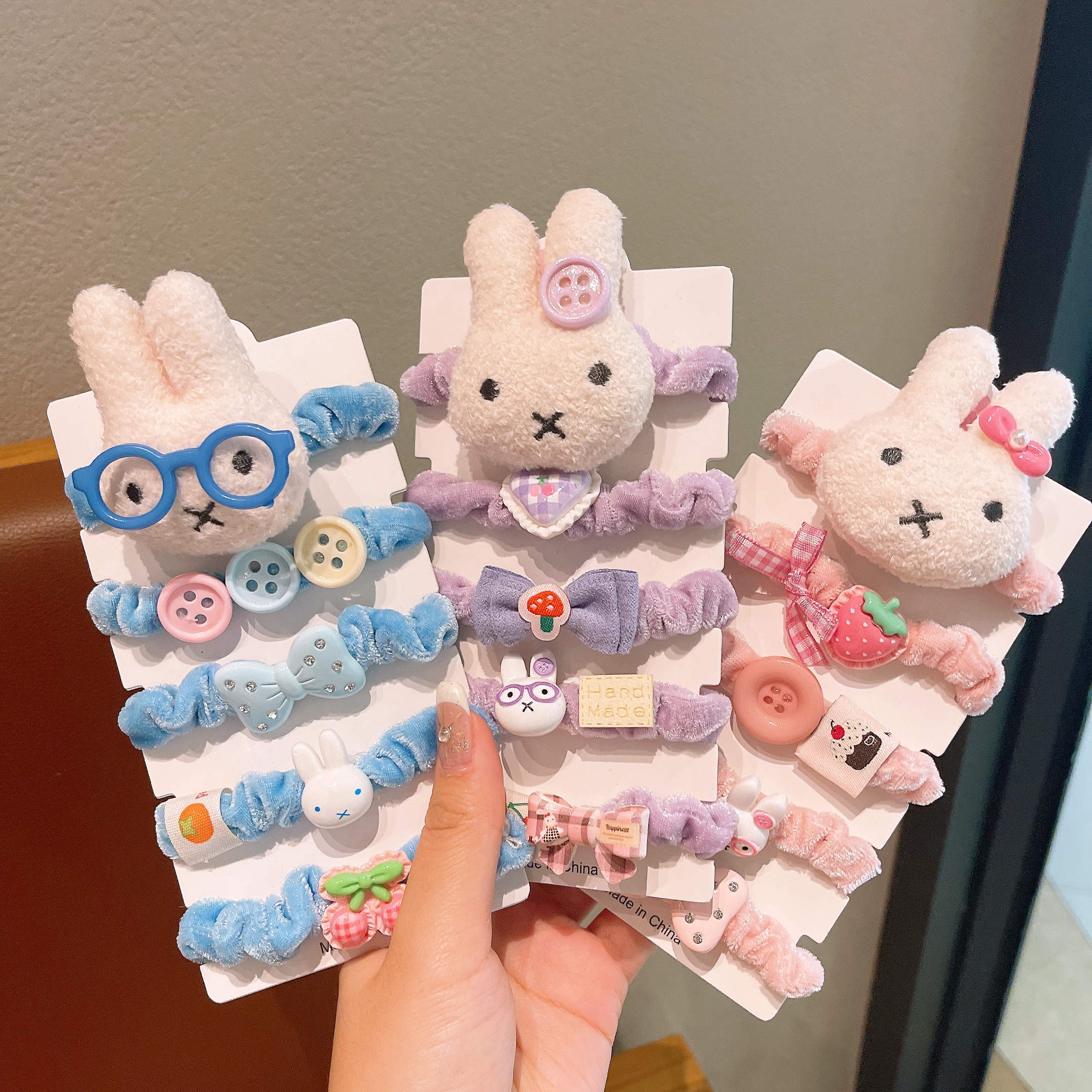 children's high elastic rubber band rabbit hair rope small intestine hair band girls hair friendly string tie hair top cuft headdress