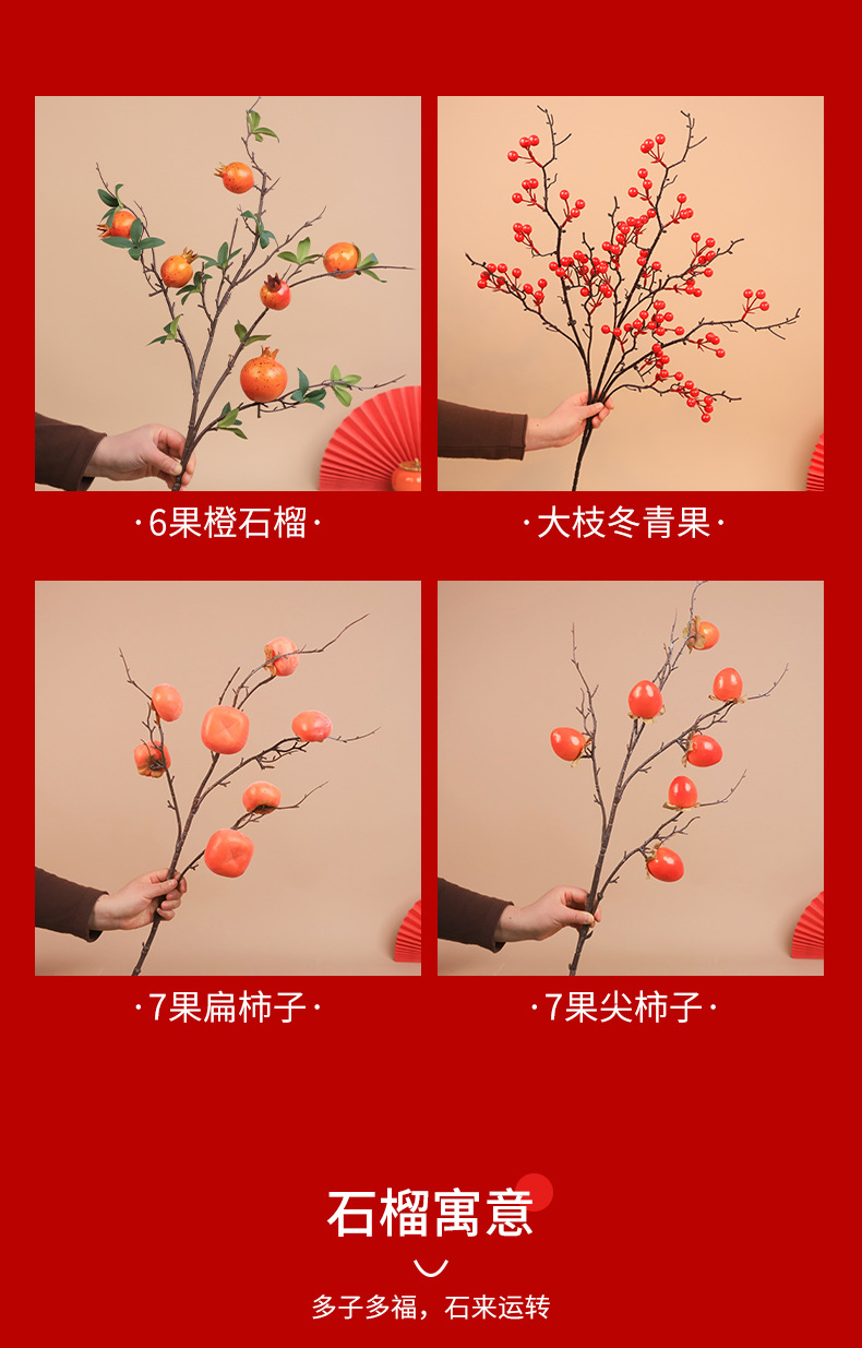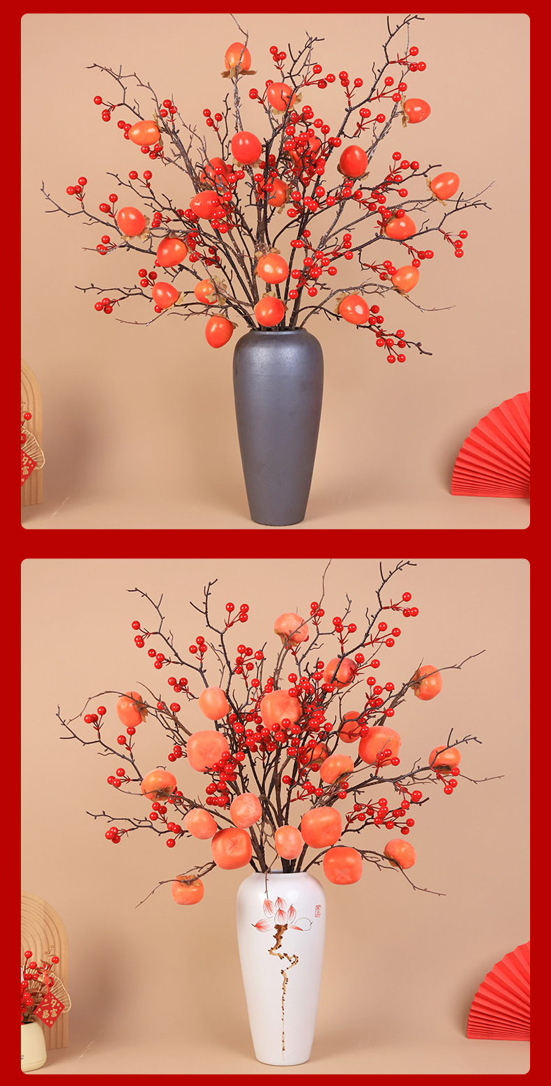 7 fruit flat persimmon 3 pieces + large branch hollyberry 2 pieces + large golden edge orange bottle
