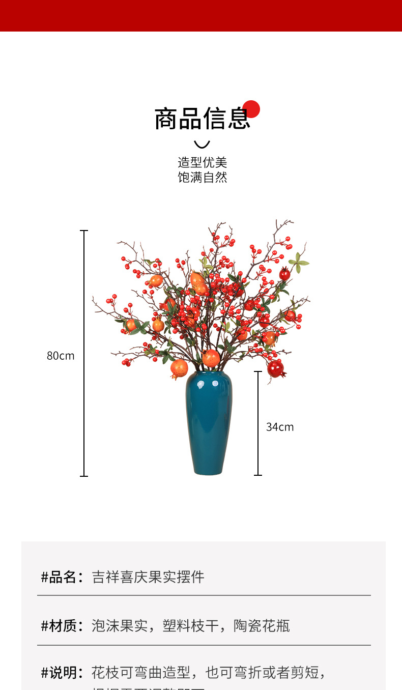 6 fruit orange pomegranate 3 + large branch hollyberry 2 + chinese orchid bottle