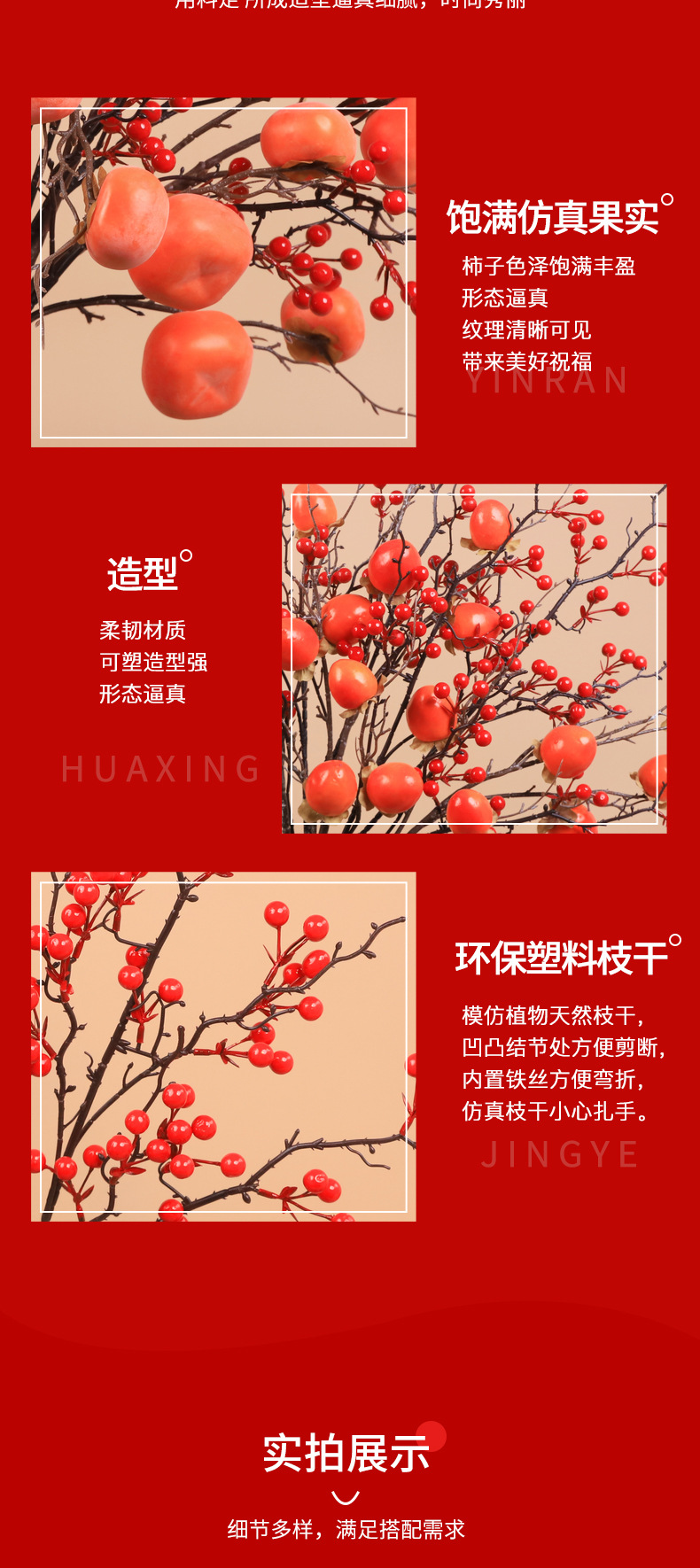 7 fruit tip persimmon 3 + large branch hollyberry 2