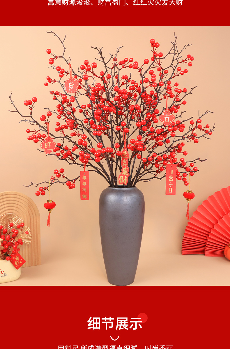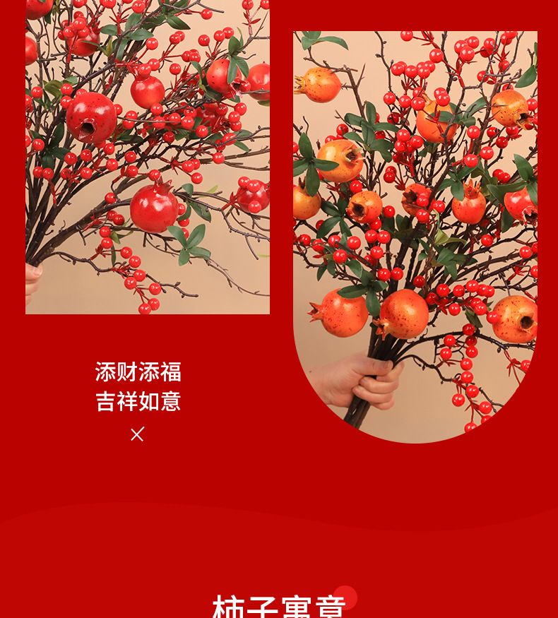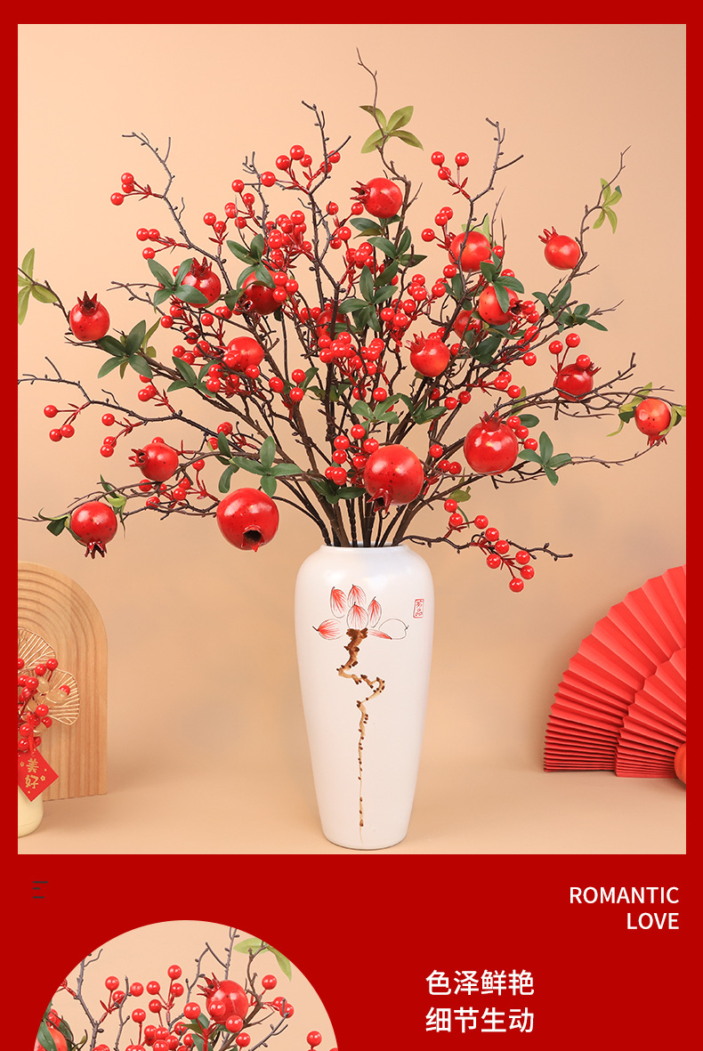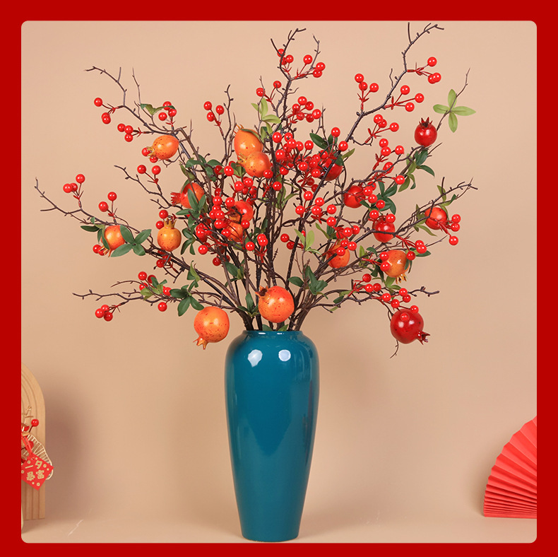 6 fruits pomegranate 3 pieces + large branches hollyberry 2 pieces