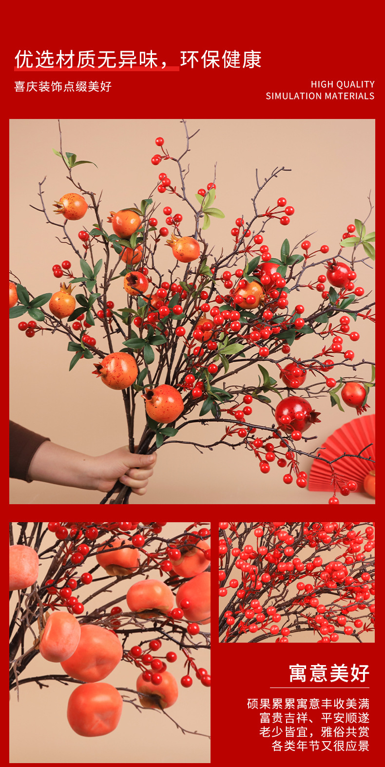 6 fruit orange pomegranate 3 + large branch hollyberry 2