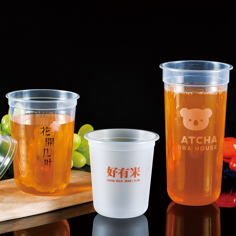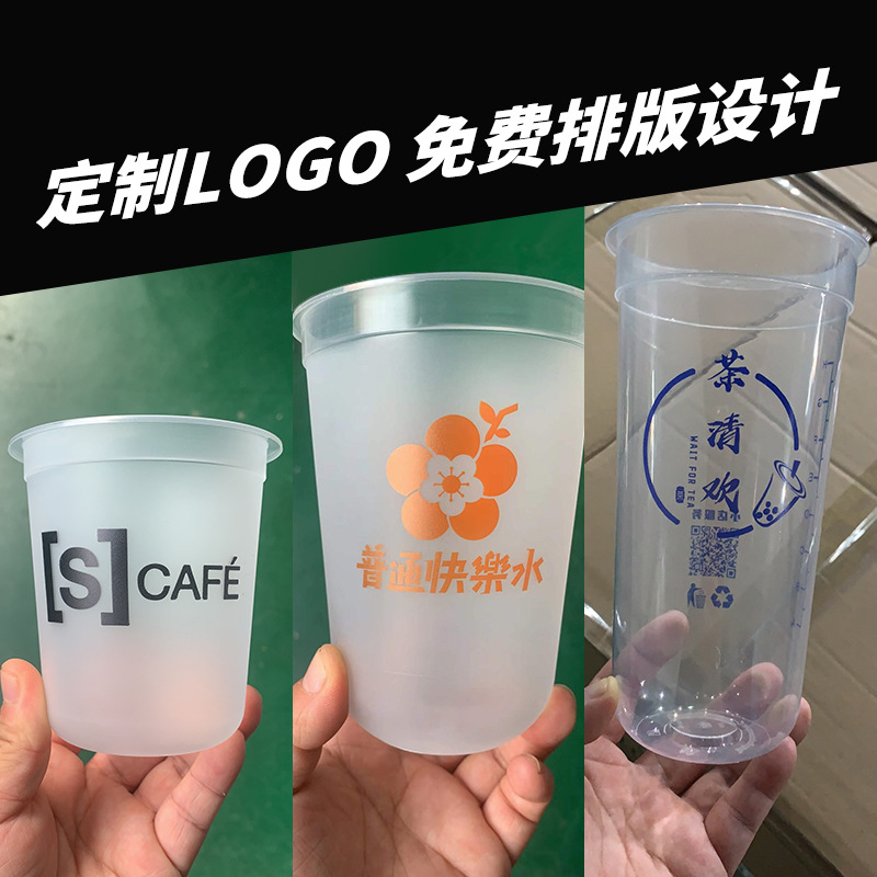 customized logo milky tea cup chubby cup disposable 90 caliber u-shaped frosted thickened pp injection cup factory wholesale