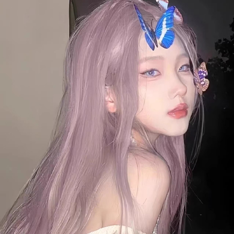 forehead lace mid-length straight greyish purple [hand mask]]